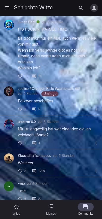 Matthias, könnte man einstellen das man sich einen Hintergrund zwischen den Beiträgen reinstellen kann, wie ein Handy Hintergrund