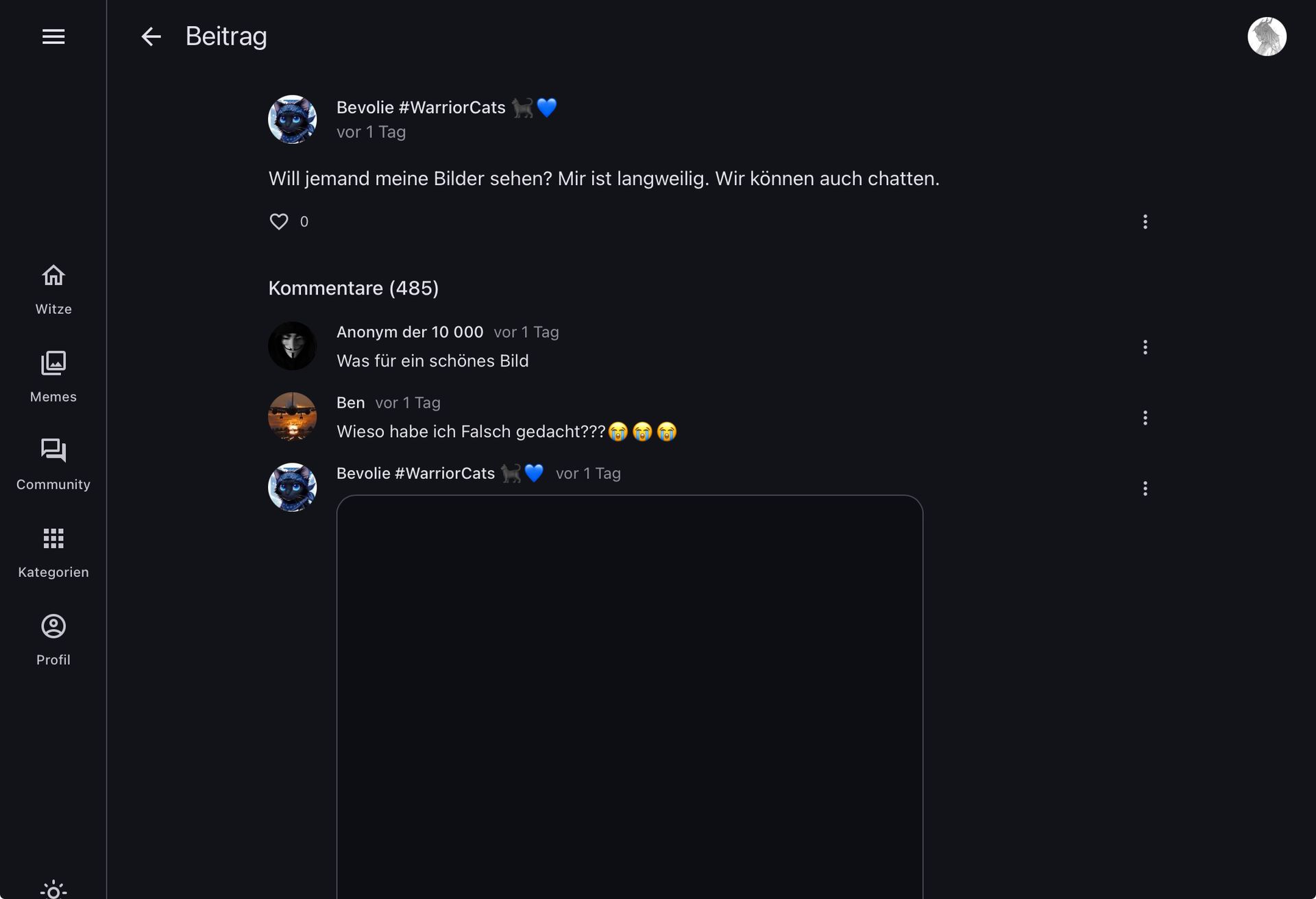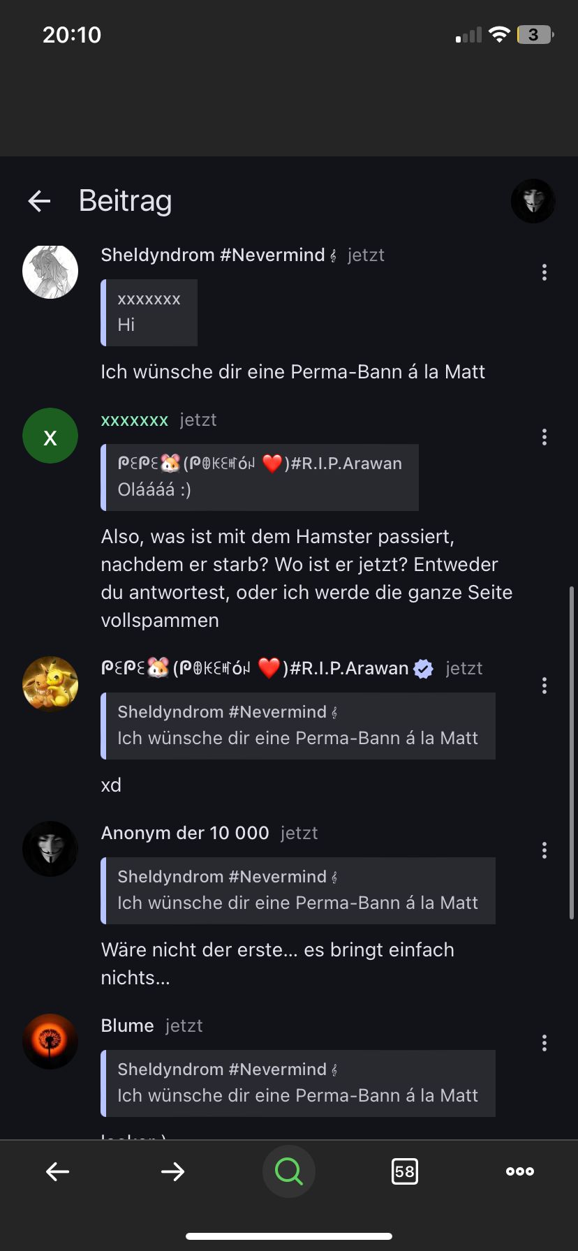Will keinen Streit mit ihm, weil ich in seinem Beitrag iwie gechattet hab