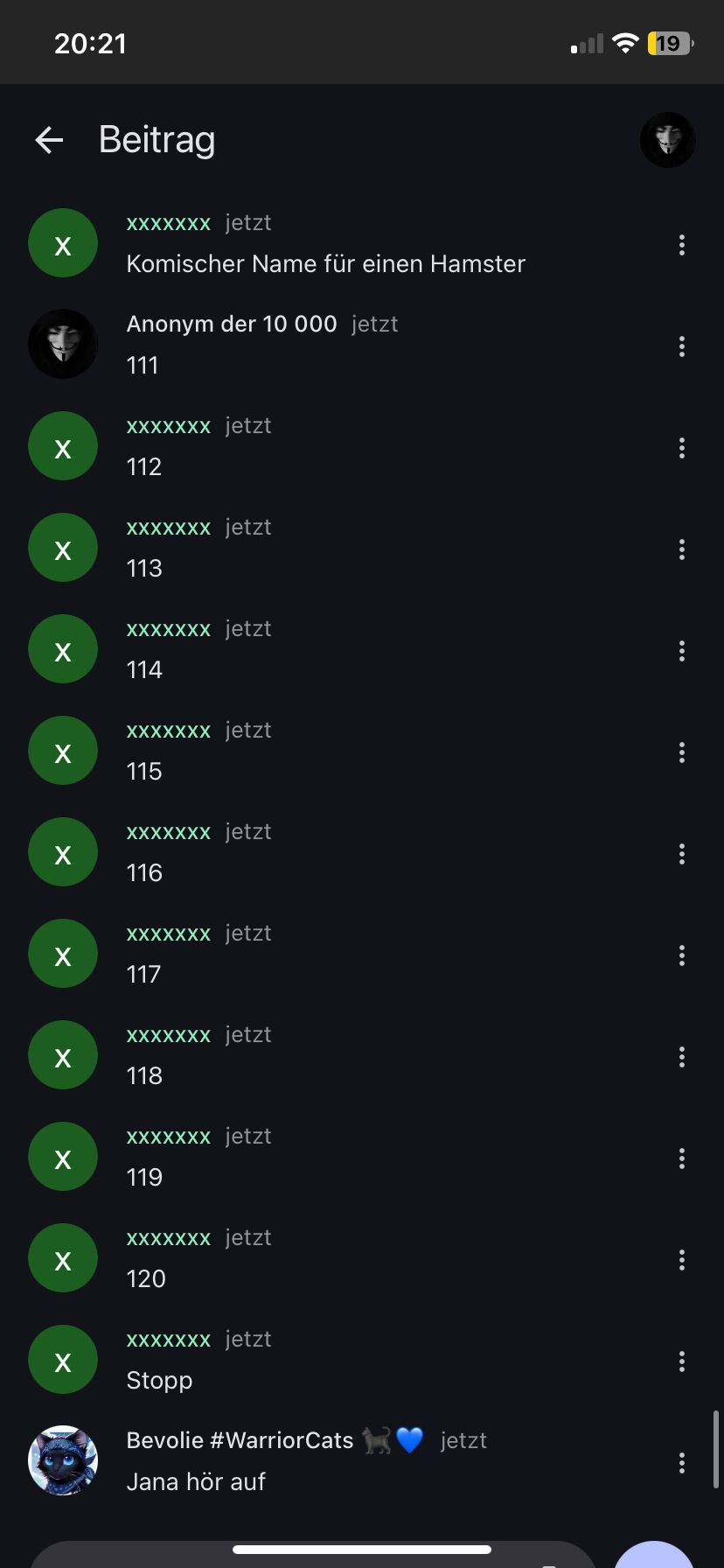 Jana, bitte hör auf, sonst muss ich dich sperren, aufgrund von Belästigung