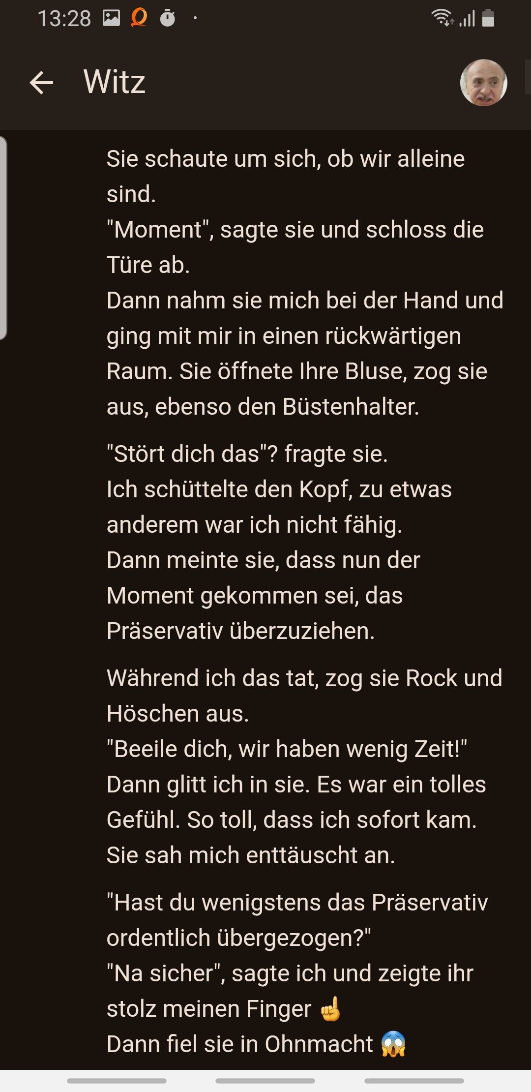 Und Schissi, wenn du Witze unterhalb der Gürtellinie nicht aushältst, dann solltest du vielleicht die Seite wechseln. Das hier ist nämlich keine Kinderseite.