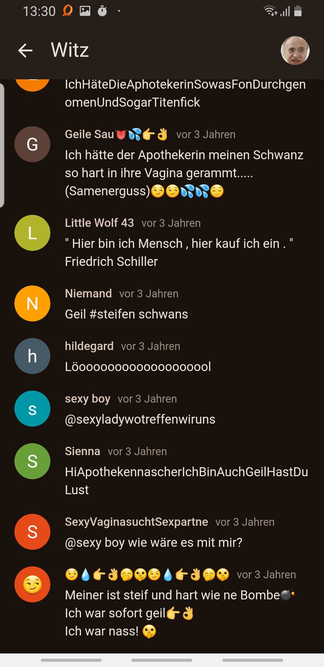 Und Schissi, wenn du Witze unterhalb der Gürtellinie nicht aushältst, dann solltest du vielleicht die Seite wechseln. Das hier ist nämlich keine Kinderseite. Hier bitte: https://www.spick.ch/dein-spick/witze/ Auf dieser Seite bist du besser aufgehoben