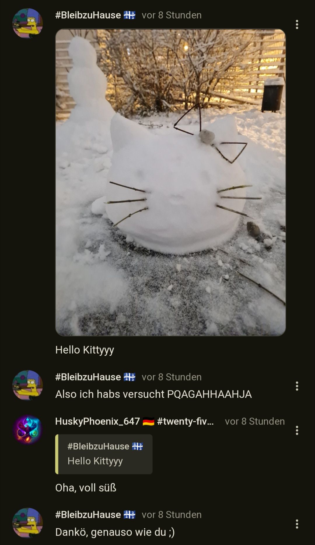 Ja, Chat. Du könntest ja ein Thema finden, eine Frage stellen.