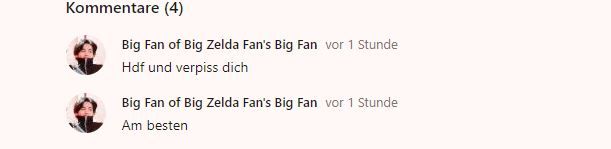 Warum sollte sich Big Fan of Big Zelda Fan's Big Fan verpissen? Hat er gegen Regeln verstoßen? (Wenn ja dann hab ich davon bis jetzt nichts gemerkt) Oder hast du das Recht hier zu sagen wer bleiben darf und wer nicht? (Ich glaube ziemlich wahrscheinlich nicht)