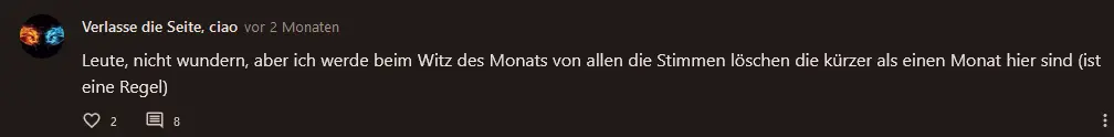 Bei Robin steht: ~[andere Witze: (👍6) - (👍2 | 👎2)]