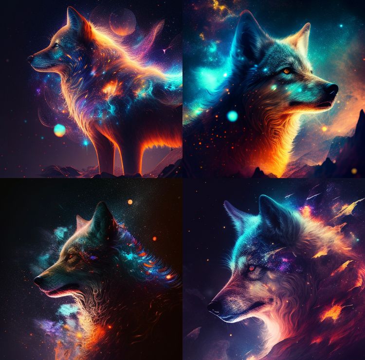 Neon-Wolf oder geometrischer Wolf (so Mosaik-Style)