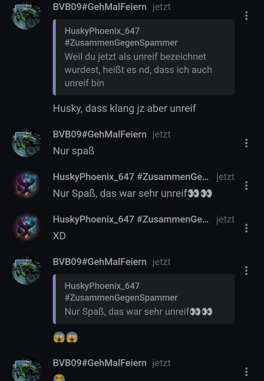 Aber Husky hat darauf geantwortet, dass ich wegen meiner "Vergangenheit" nicht beitreten darf... Und so fing der streit an...