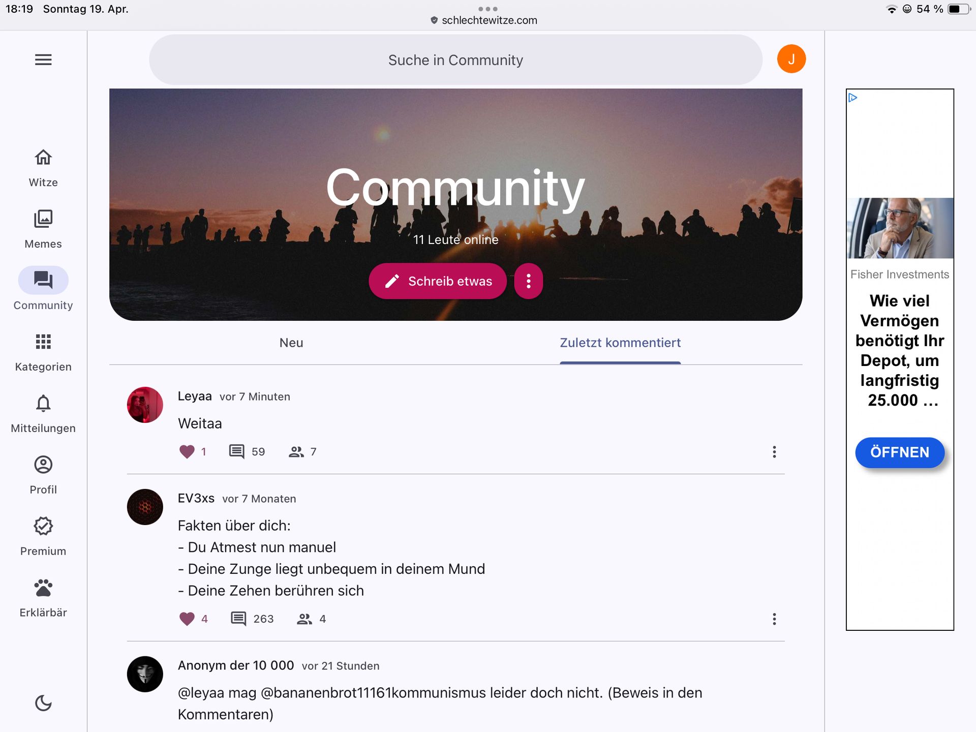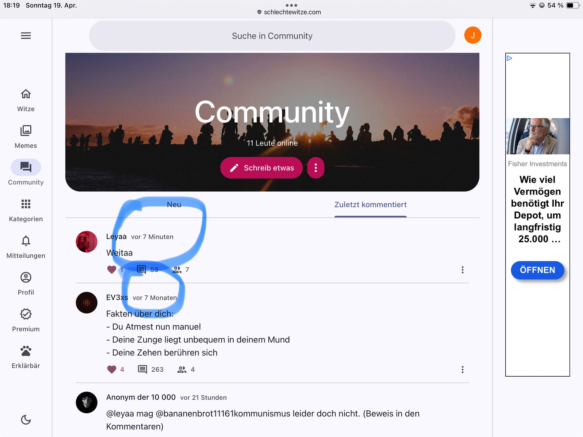 Ok aber du musst nicht gleich zu jedem fliegenschiss einen Beitrag machen wie zum Beispiel das du 1111 Kommentare hast