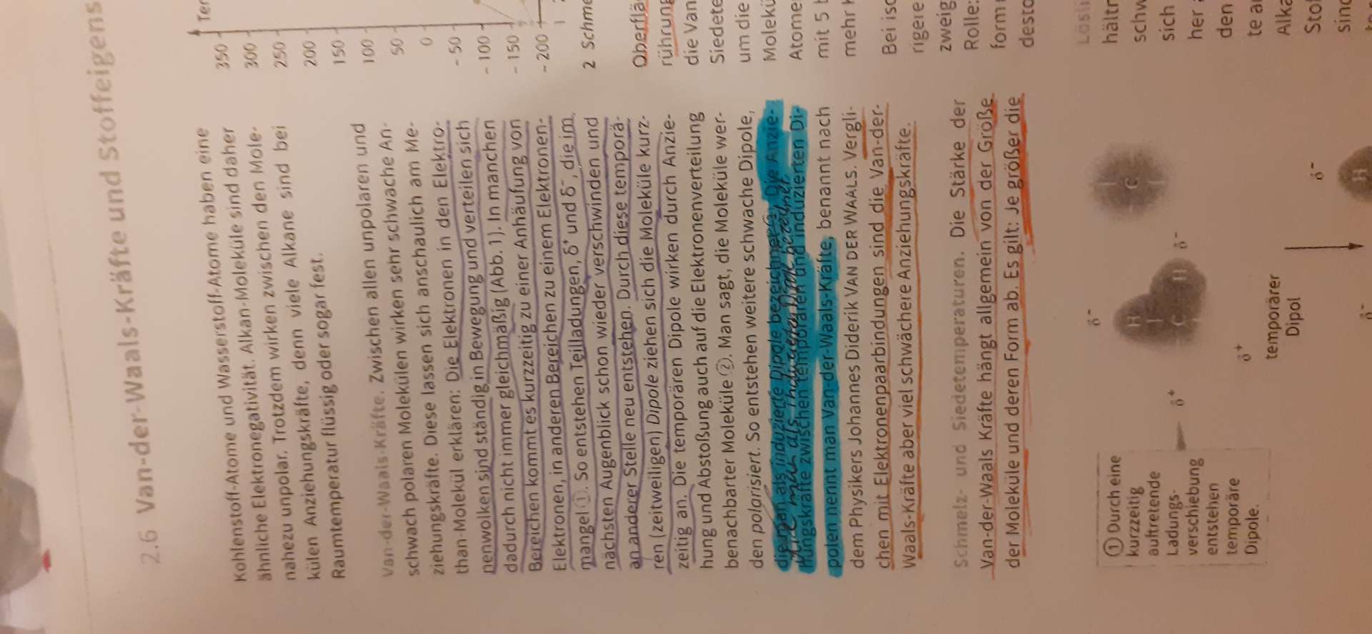 Van-der-Waals-Kräfte. Nach van der Waals benannte zwischenmolekulare Kräfte, die zwischen Atomen bzw. Molekülen auftreten. Diese Anziehungskräfte entstehen dadurch, dass Atome äußerst kurzlebige Dipole bilden können.