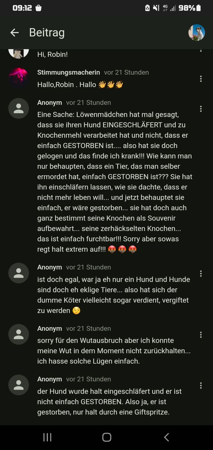 Es ist eif albern wie man sich aufregt das ein Tier nd so ‘begraben’ wurde wie Man es will das man nd mal kennt😂 und ja, natürlich sollen auch tote Lebewesen mit Respekt behandelt werden, aber wie gesagt war nd mal ich es, die entschieden hat was mit dem Hund passiert…
