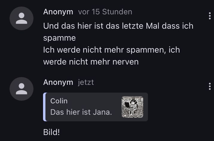 Und das hier ist das letzte Mal dass ich spamme Ich werde nicht mehr spammen, ich werde nicht mehr nerven