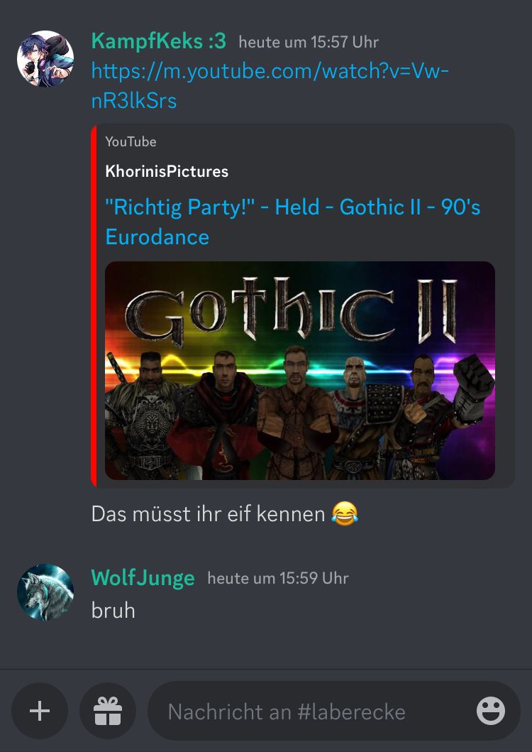 Ich mag nur deine Witze nicht, aber wenn du auf Discord nicht anders bist als hier…