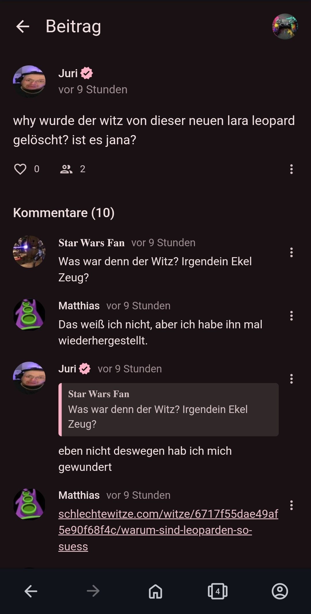 Matt? Juri sagt, dass man seine Kommentare nicht mehr sehen kann. Er hat scheinbar auch einen Beitrag gepostet, den man nicht sehen kann. Wurde er irgendwie gesperrt?🥲 Was ist da los?