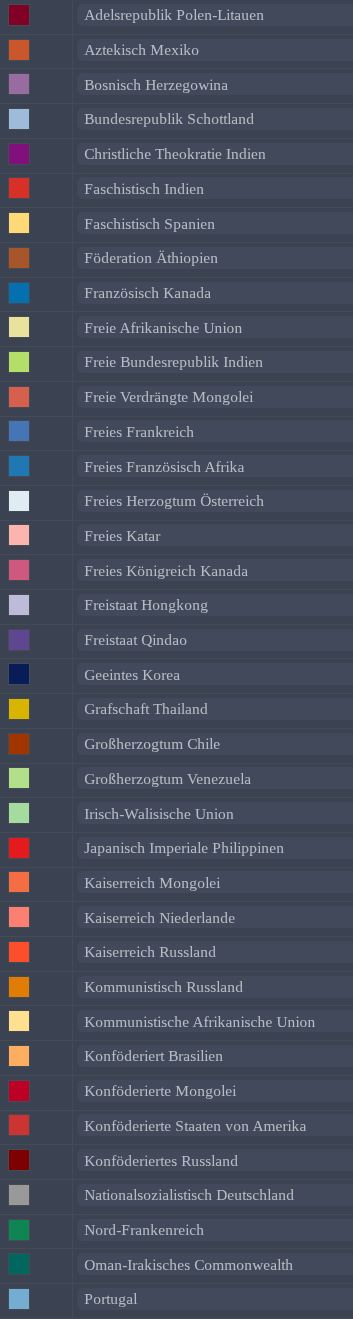 Eigentlich wäre es auch noch interessant, die Antarktis als besetzbares Gebiet in diesen Darstellungen zu haben. Dann würde zB auch dein Großherzogtum-Chile noch einen zusätzlichen Profit aus seinem Vorgehen schlagen…
