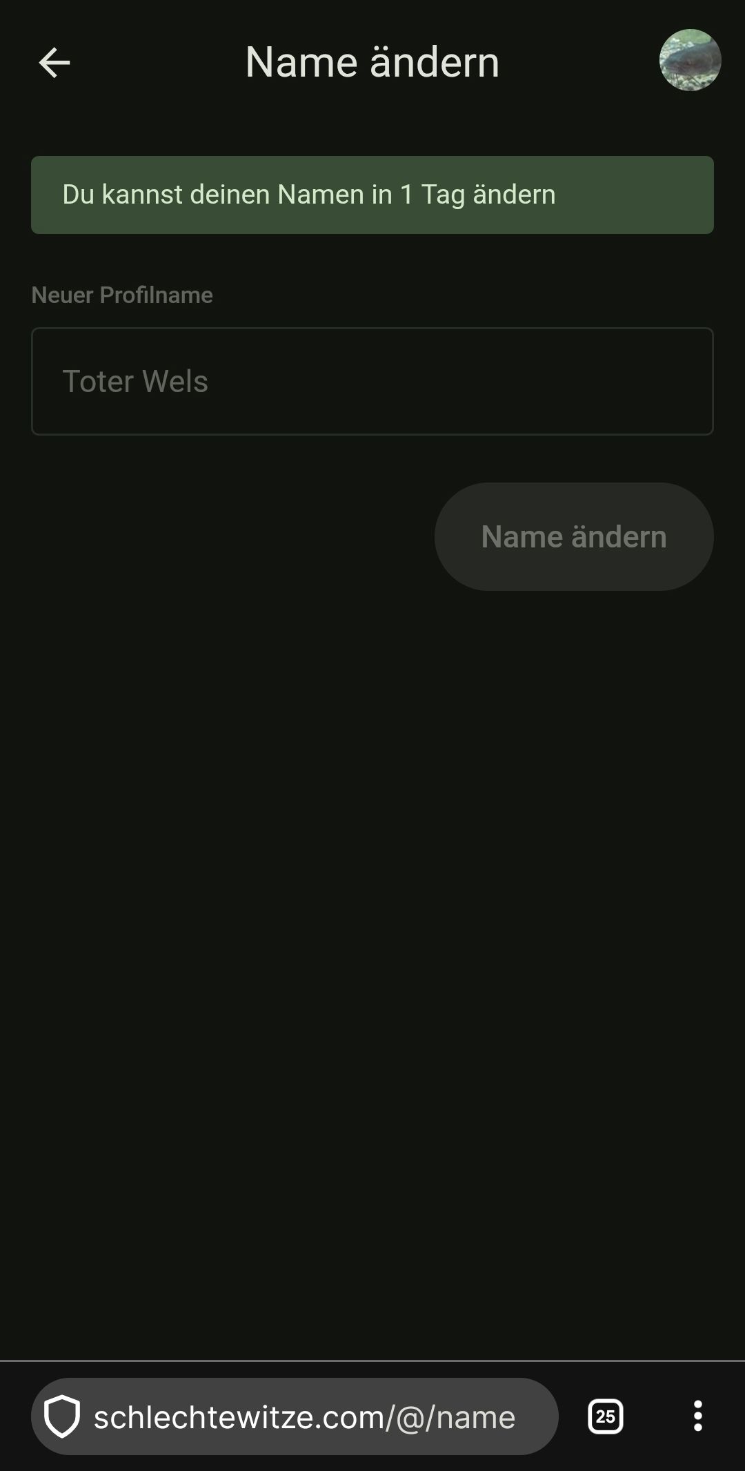 Könntest du vllt auch einstellen, dass da die Zeit runtergezählt wird, bis man sich einen neuen Namen machen kann? Ich hab meinen heute Mittag geändert, also dass es vllt anzeigt dass ich des in 12h oder so wieder ändern kann.