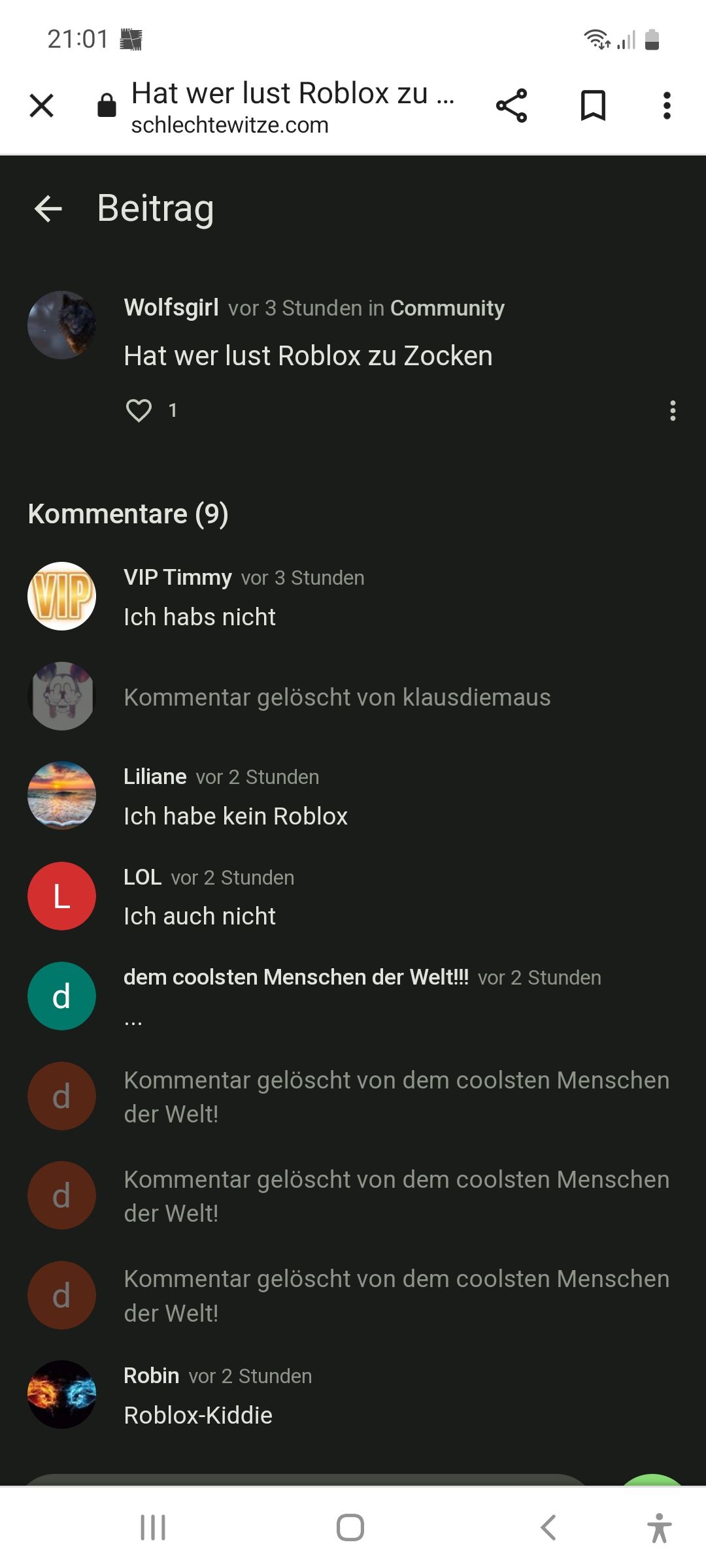 Robin,nur weil jemand ein Spiel spielt,was man nicht mag,ist man kein "Kiddie".Ich bewerte dich ja auch nicht je nachdem,was man spielt.Andere tuhen sowas ja auch nicht.Du weißt ja nicht mal,was Wolfsgirl in Roblox spielt,also lass den Mist gefällig!