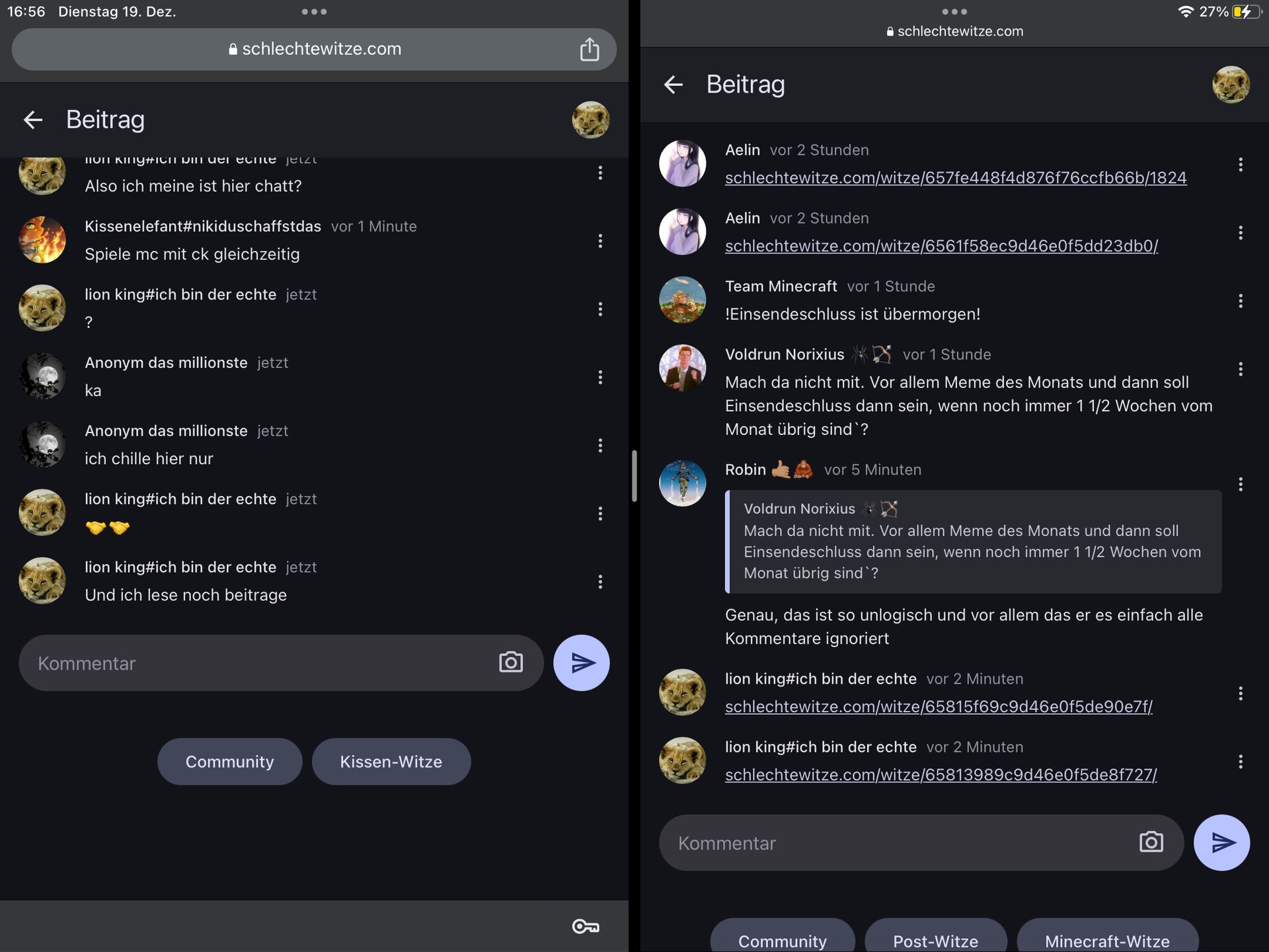 Also ich meine ist hier chatt?
