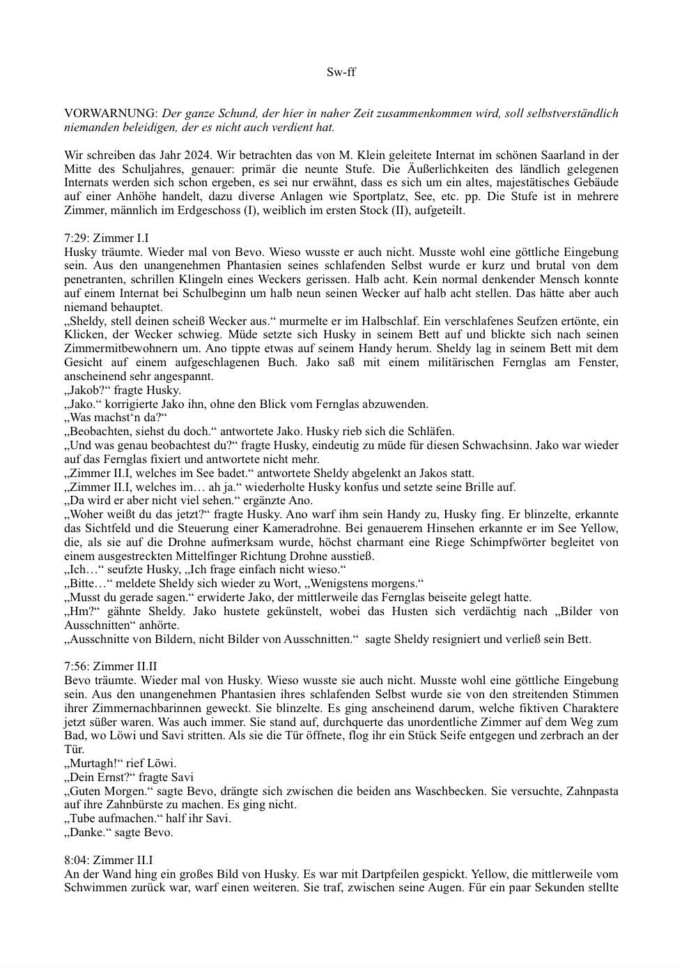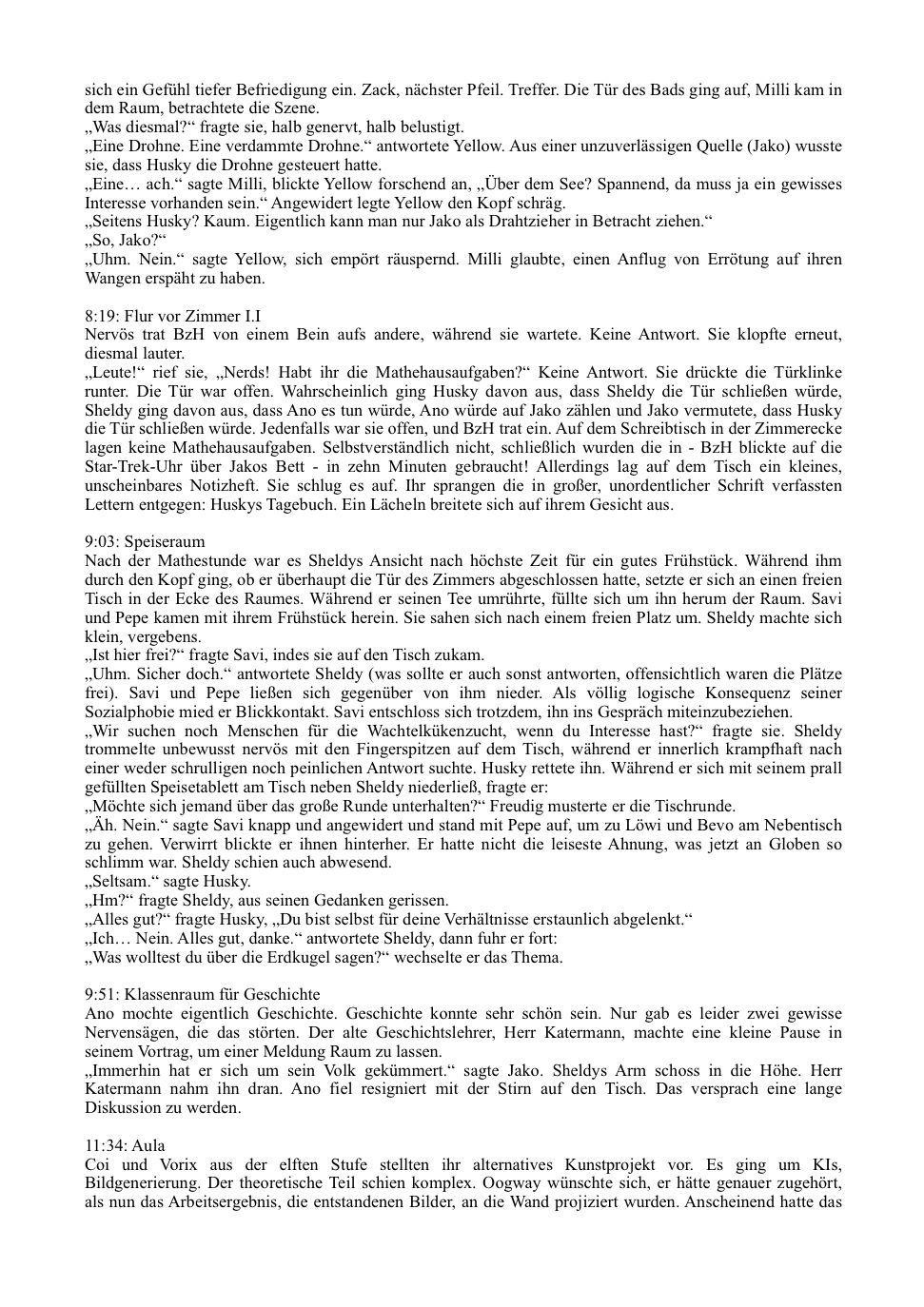 Die Geschichte spielt auf einem Internat, in dem die User Schüler sind. ...Naja, einige zumindest - Matthias ist z.B. der Direktor, und Katermann ist der Geschichtslehrer. Ansonsten geht es ein bisschen zu wie in "Schloss Einstein", denn das Miteinander der Schüler hat schon etwas Daily-Soap-mäßiges. Zum Beispiel verlieben sich zwei Schüler ineinander, andere sind sauer aufeinander, wieder ein anderer versucht Gleichgesinnte für ein Hobby zu finden.