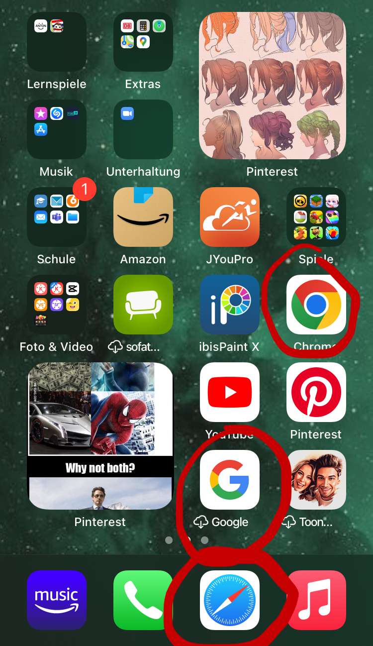 Hab 1 auf Safari, 1 auf Chrome und den anderen auf google alles andere Apps