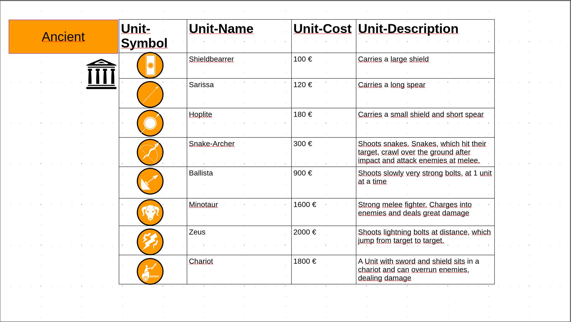 2.b. Recruitment • first in turn order begins • you may spend as much of the money you like. Money not spended will be saved for future recruitment • you may only recruit your fraction-specific units (look at tables in comment section) on provinces of your colour 2.c. Movement • first in turn order begins • every unit may move to 1 adjacent (edge on edge) province • multiple units from one porivnce may move simultaneously • If moving on an enemy province (other colour): ◦ A) No enemies in the province: