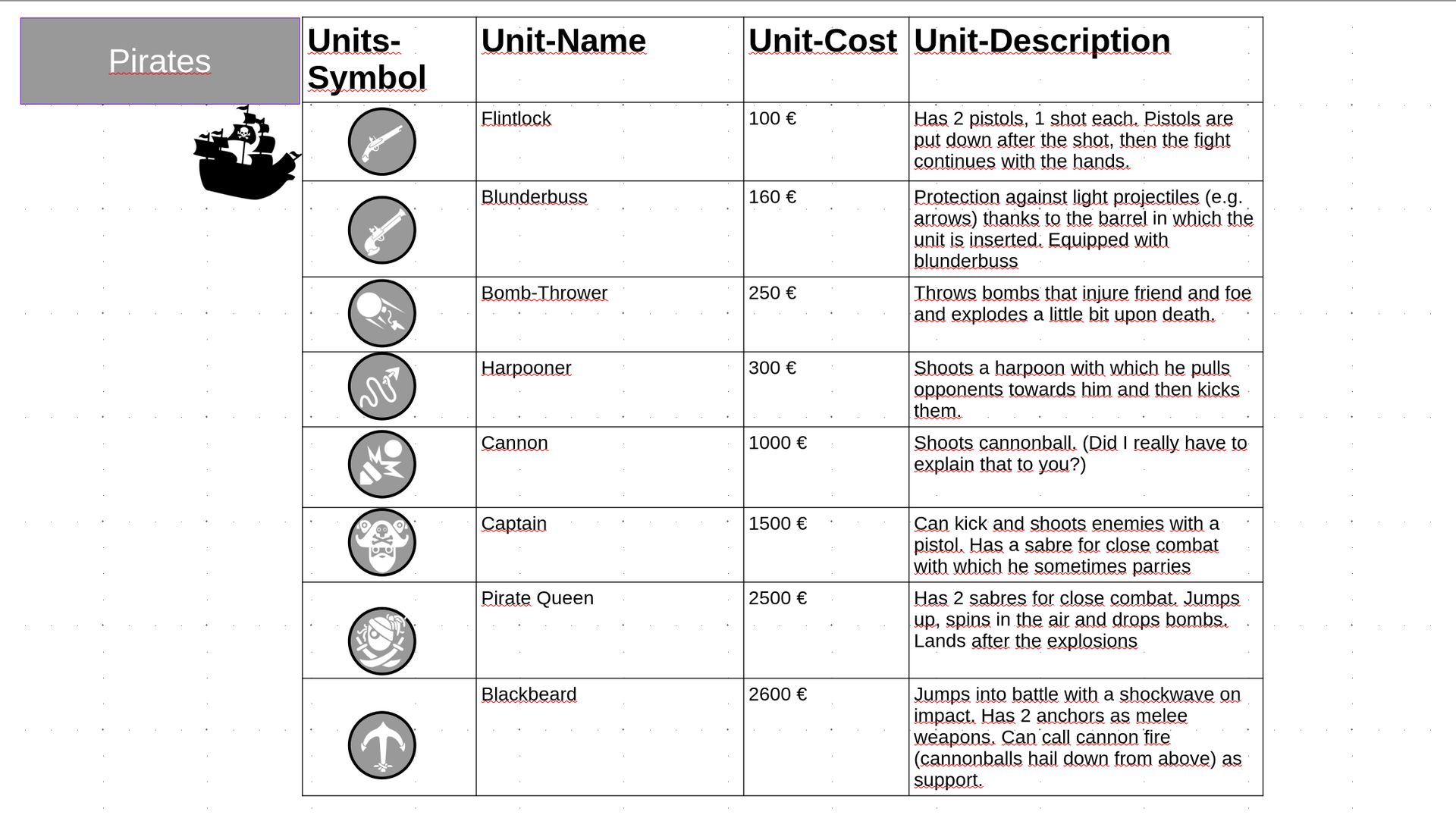WAREVENT Fractions and turn order: 1. Ano10k - Ancient 2. Face - Dynasty 3. Slay - Spooky 4. SWF - Pirates Gameplay & Rules: 1. BEGINNING-RECRUITMENT • first in turn order begins • everyone starts with 3000€ • you may spend as much of the money you like. Money not spent will be saved for future recruitment • you may only recruit your fraction-specific units (look at tables in comment section) on provinces of your colour 2 THE GAME [2.a. and 2.b. will be skipped, if 1. was the last step] 2.a. Income Everyone will get the turn-specific income, which will be declared from me every turn and will become more and more over time. If you lost your fraction-specific capital (look table, the symbol below the name of the fraction), you’ll only gain half of the income.