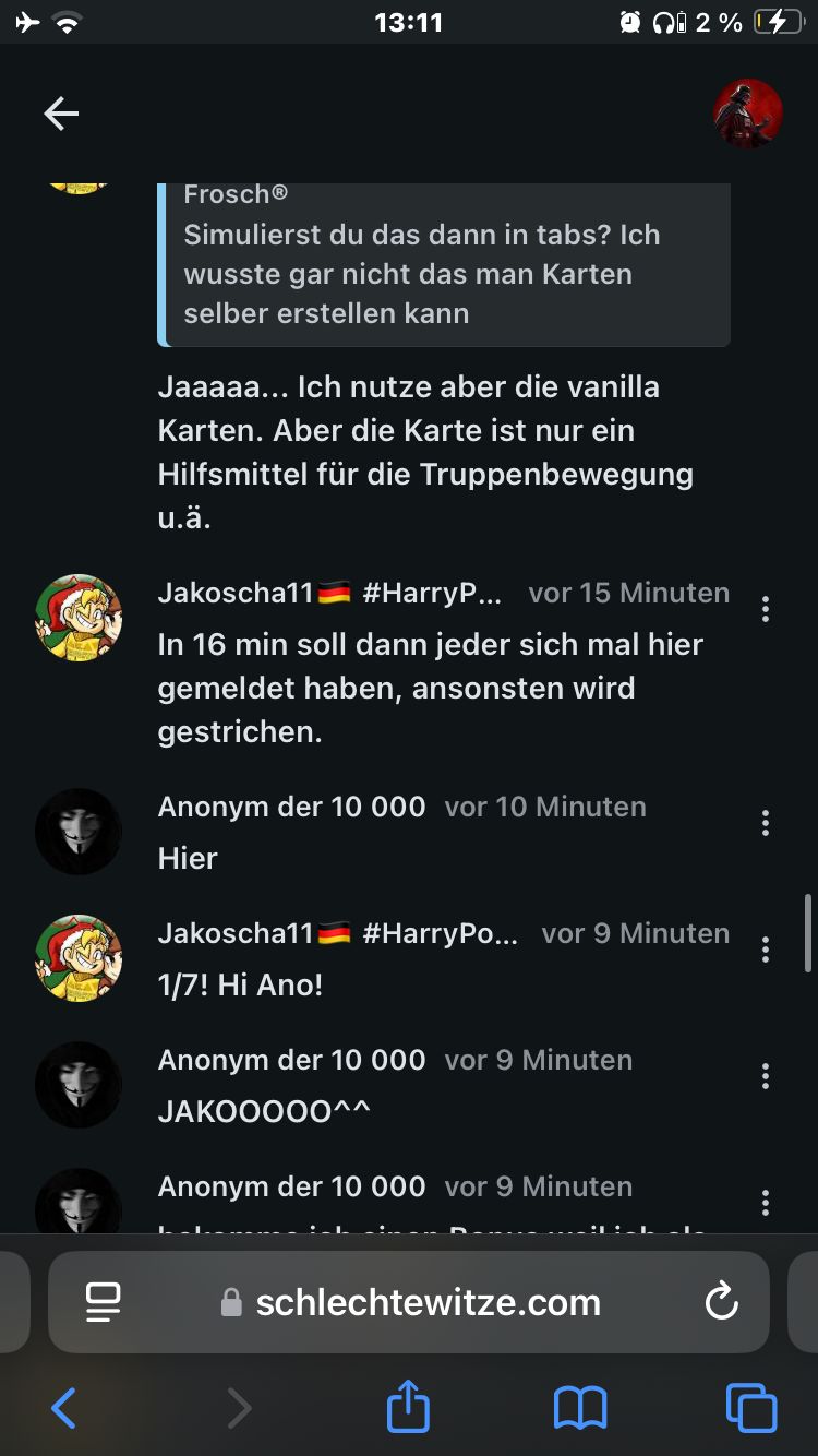 In 16 min soll dann jeder sich mal hier gemeldet haben, ansonsten wird gestrichen.