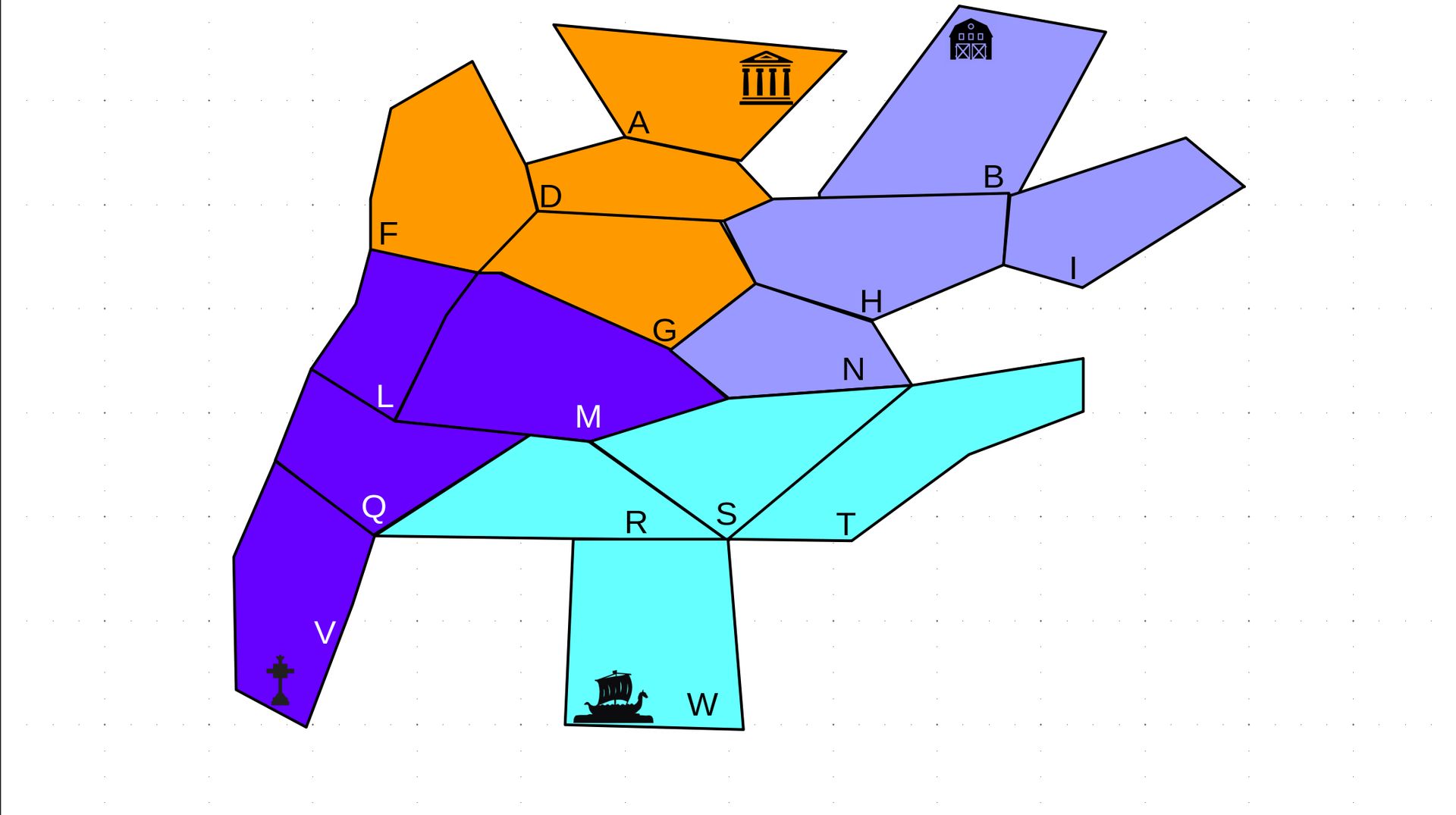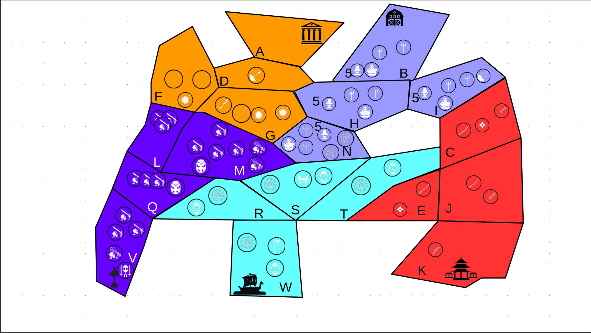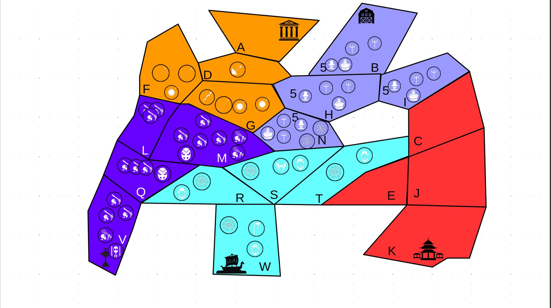 2.c. Bewegung - Erster in Zugreihe fängt an - Jede Einheit kann sich auf 1 benachbarte [Kante an Kante] Provinz bewegen - Mehrere Einheiten können sich zusammen bewegen - Wenn auf Gegnerisches Feld (andere Farbe) gezogen wird: