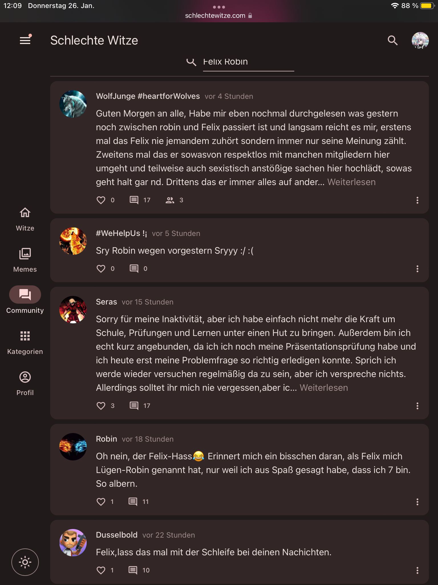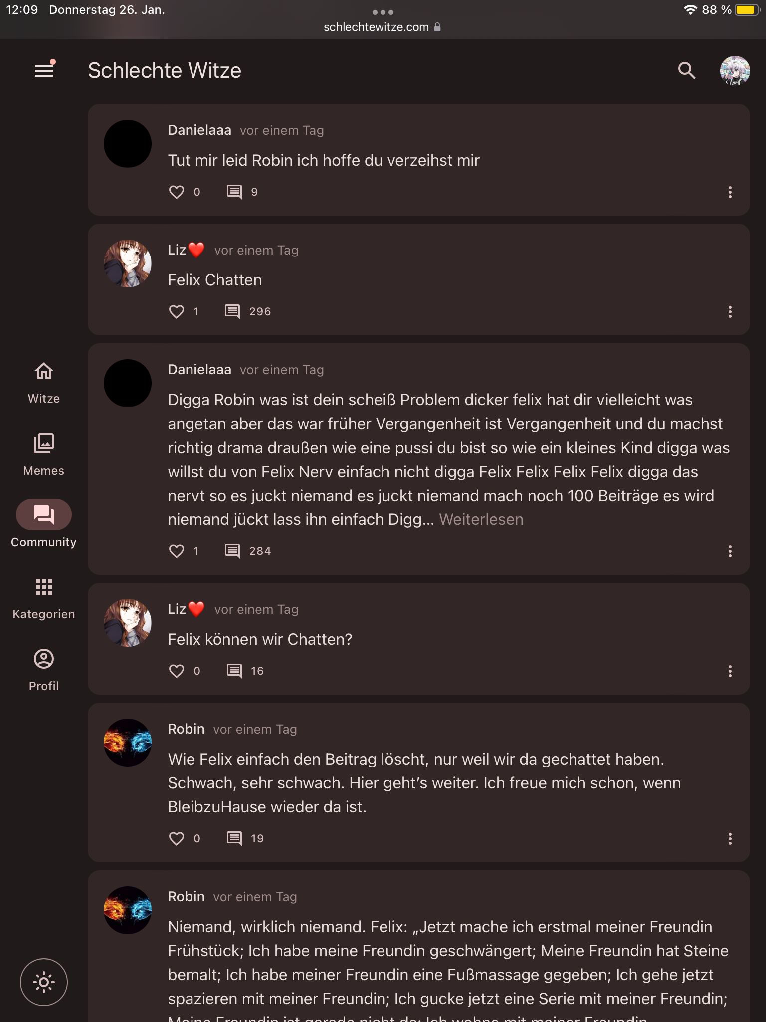 Dann hat Felix etwas gegen dich geschrieben und du diskutierst mit ihm