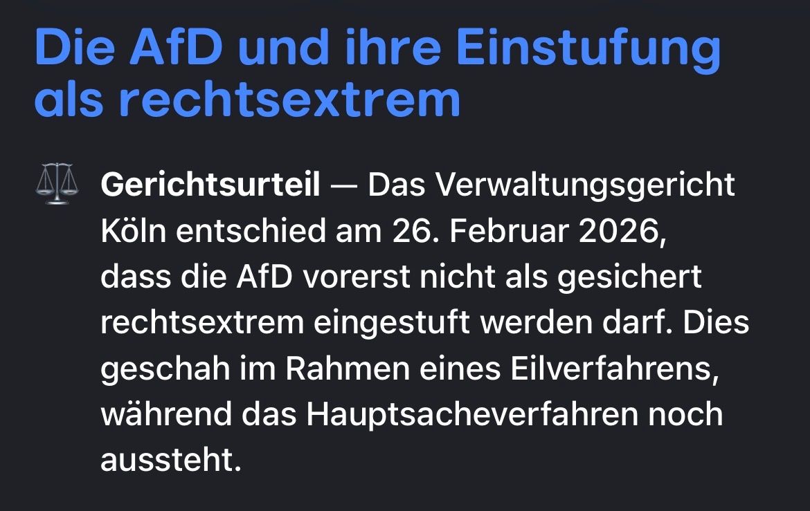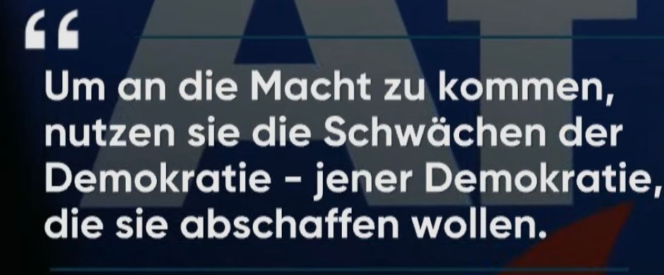 Mann digga fazit: Afd=rechtsextrem, rechte parteien IMMER schlechter weil IMMER gruppen von menscheb unter rechts leiden werden so basta.