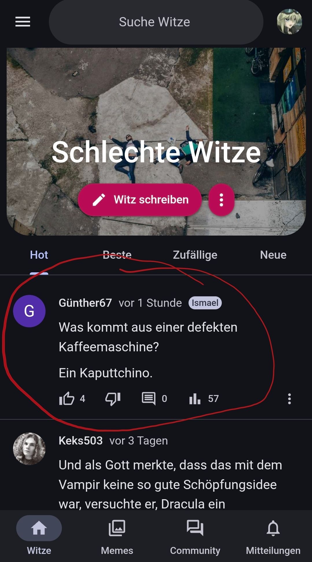 Ja, ich erinnere mich daran, dass man mal nicht durch das bloße Posten auf Hot gelandet ist… dann schreibt halt wieder mehr Witze. Auf der Meme-Seite ist ja genug los.
