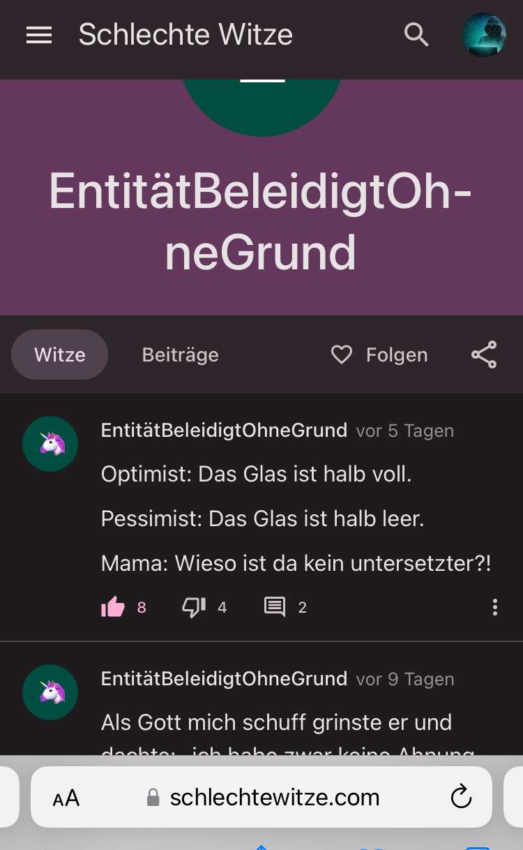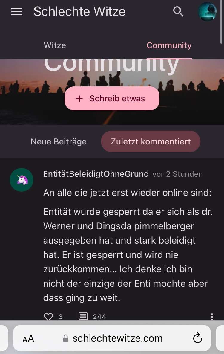 EntitätBeleidigtOhneGrundvor 3 JahrenObwohl ich ihn nicht kannte und nur seine Beiträge und Witze gesehen habe: BENOKLA