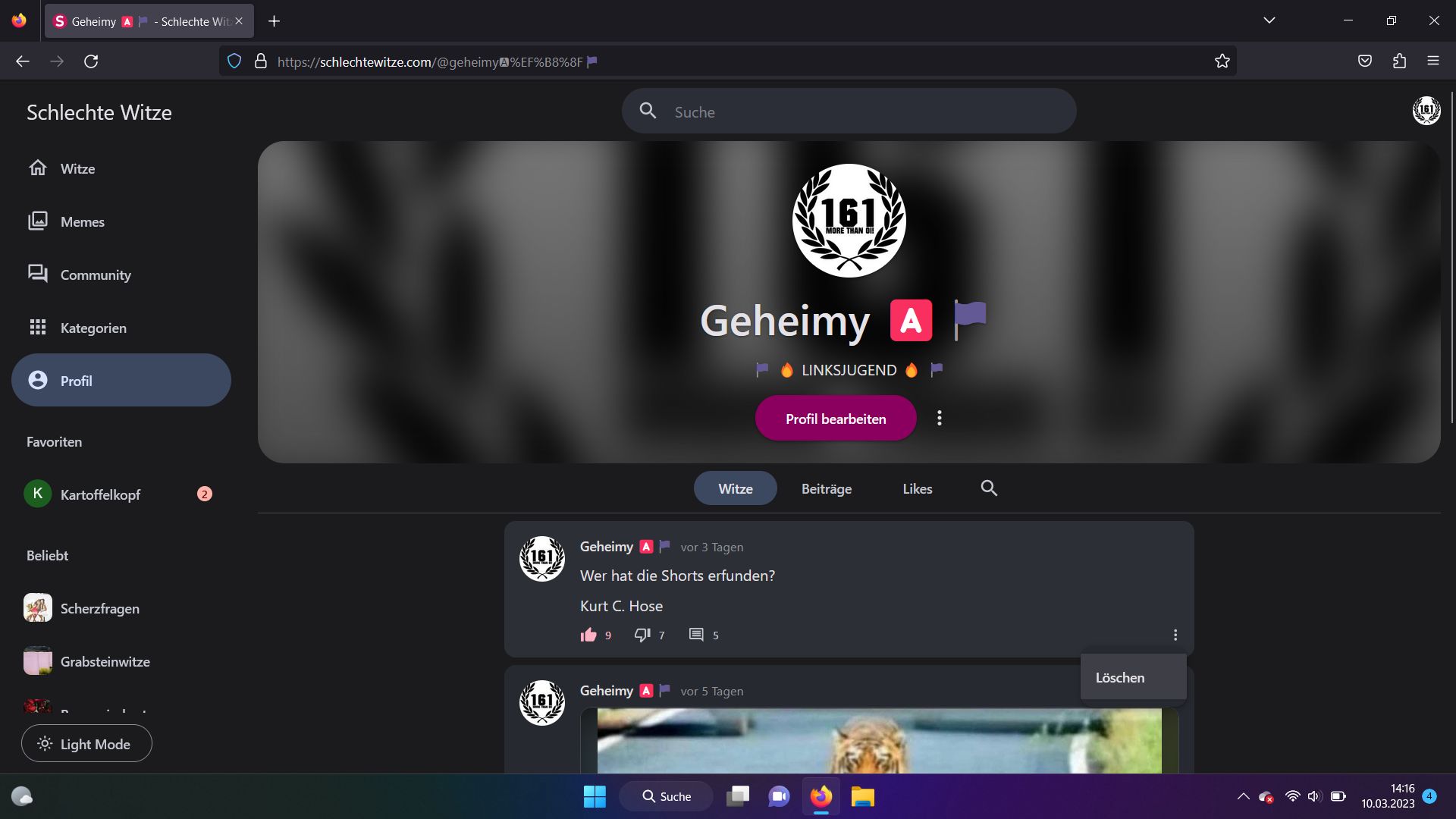 Löwi#22194®vor 3 JahrenMan muss halt angemeldet sein und der Witz darf nicht älter als sieben Tage glaube sein