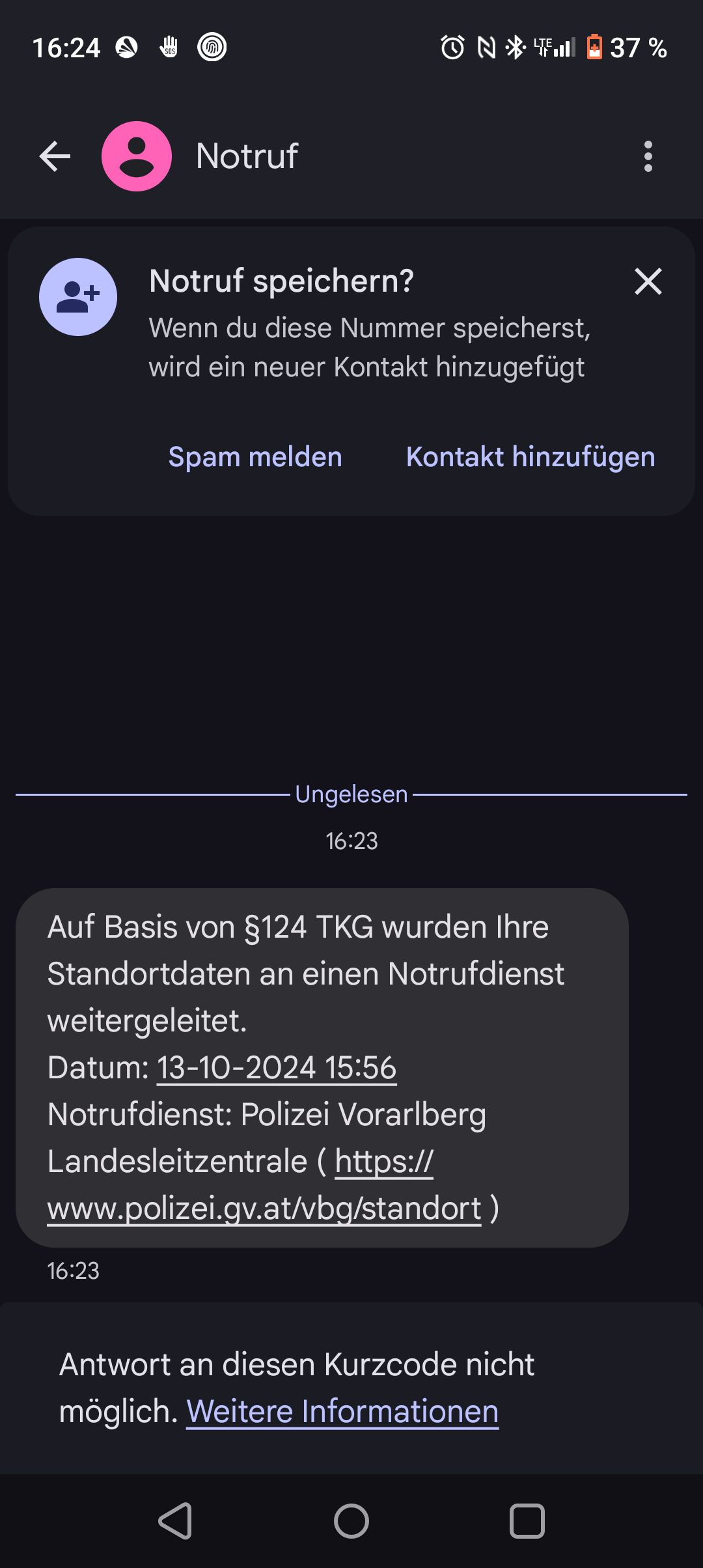 Hab versehentlich den Notruf gewählt... Das kam 3 Tage später.... Aber hey, danke, jetzt weiß ich wenigstens, dass ich in 3-4 Werktagen Hilfe erhalte, wenn ich entführt werde