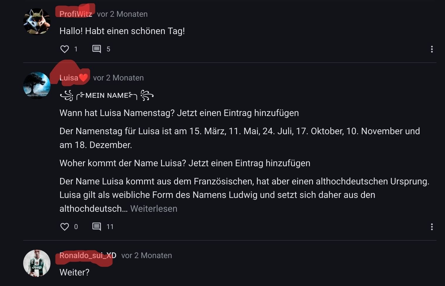 Wann hat Luisa Namenstag? Jetzt einen Eintrag hinzufügen
