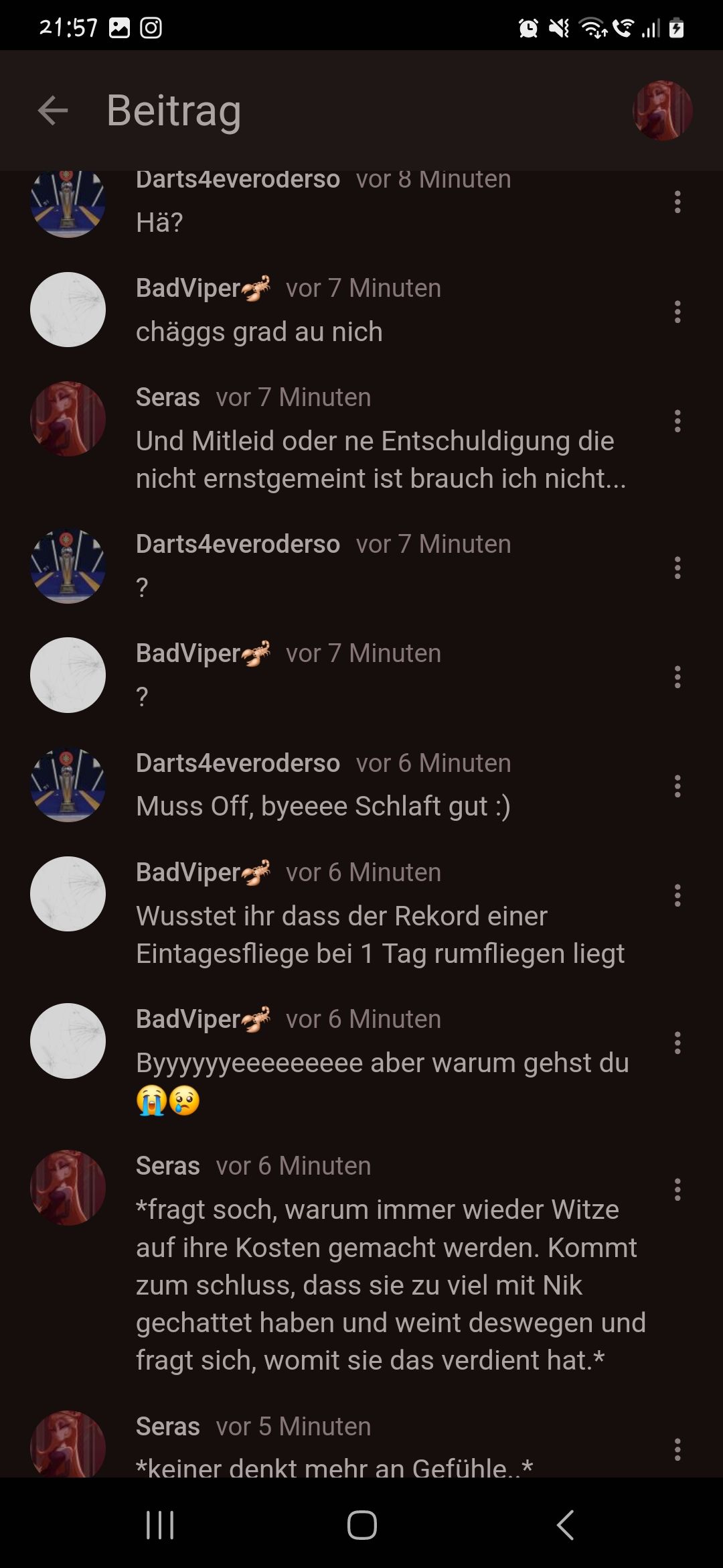 *fragt soch, warum immer wieder Witze auf ihre Kosten gemacht werden. Kommt zum schluss, dass sie zu viel mit Nik gechattet haben und weint deswegen und fragt sich, womit sie das verdient hat.*