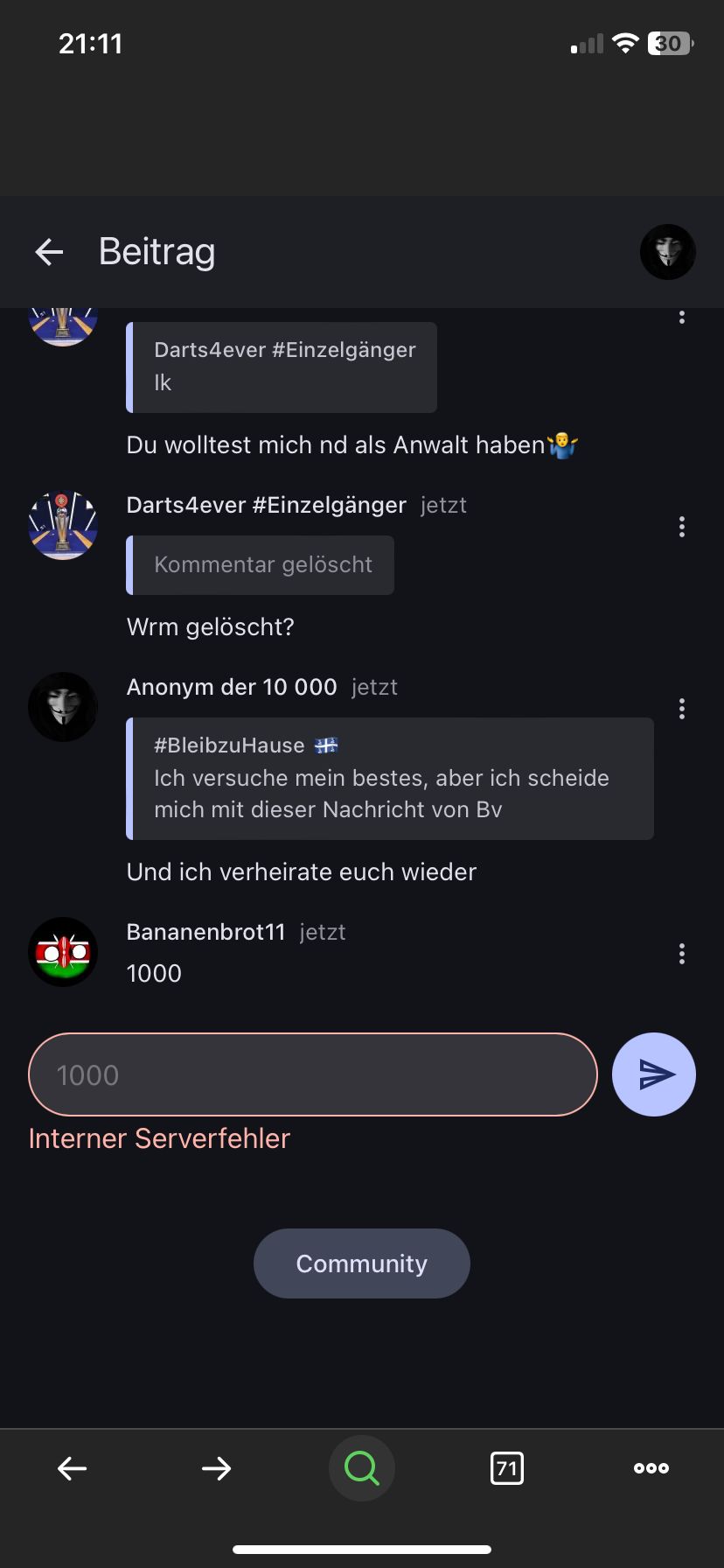 Nein, auf die letzte Nachricht von Ano der 10 000