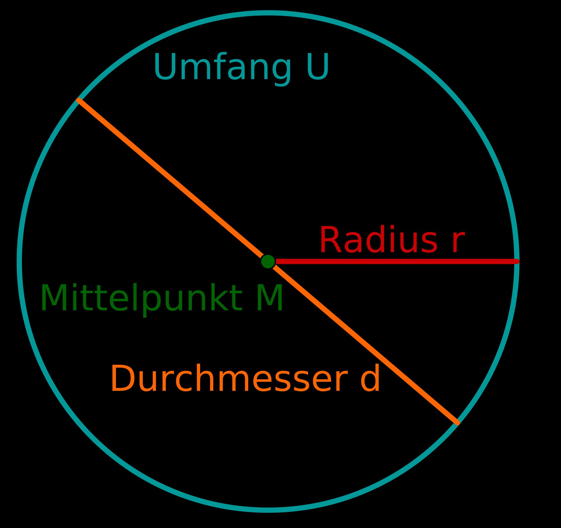 Okay, du weißt jetzt den Durchmesser (orange Linie).