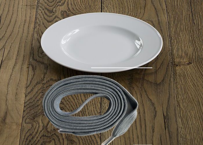 Ein Gegenstand wäre praktischer. Kannst du nen Teller und nen Faden (Schnürsenkel oder so) holen?