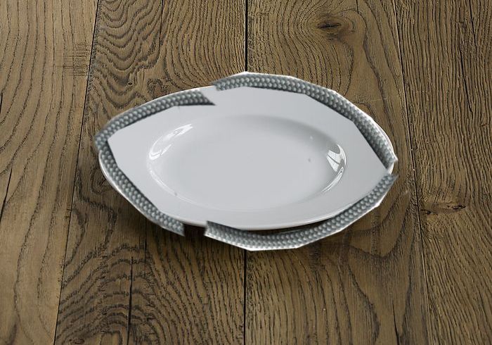Okay, dann miss mit dem Faden den Durchmesser vom Teller. Mach einen Knoten rein, oder falte den Faden zusammen, sodass du die Länge vom Durchmesser hast.