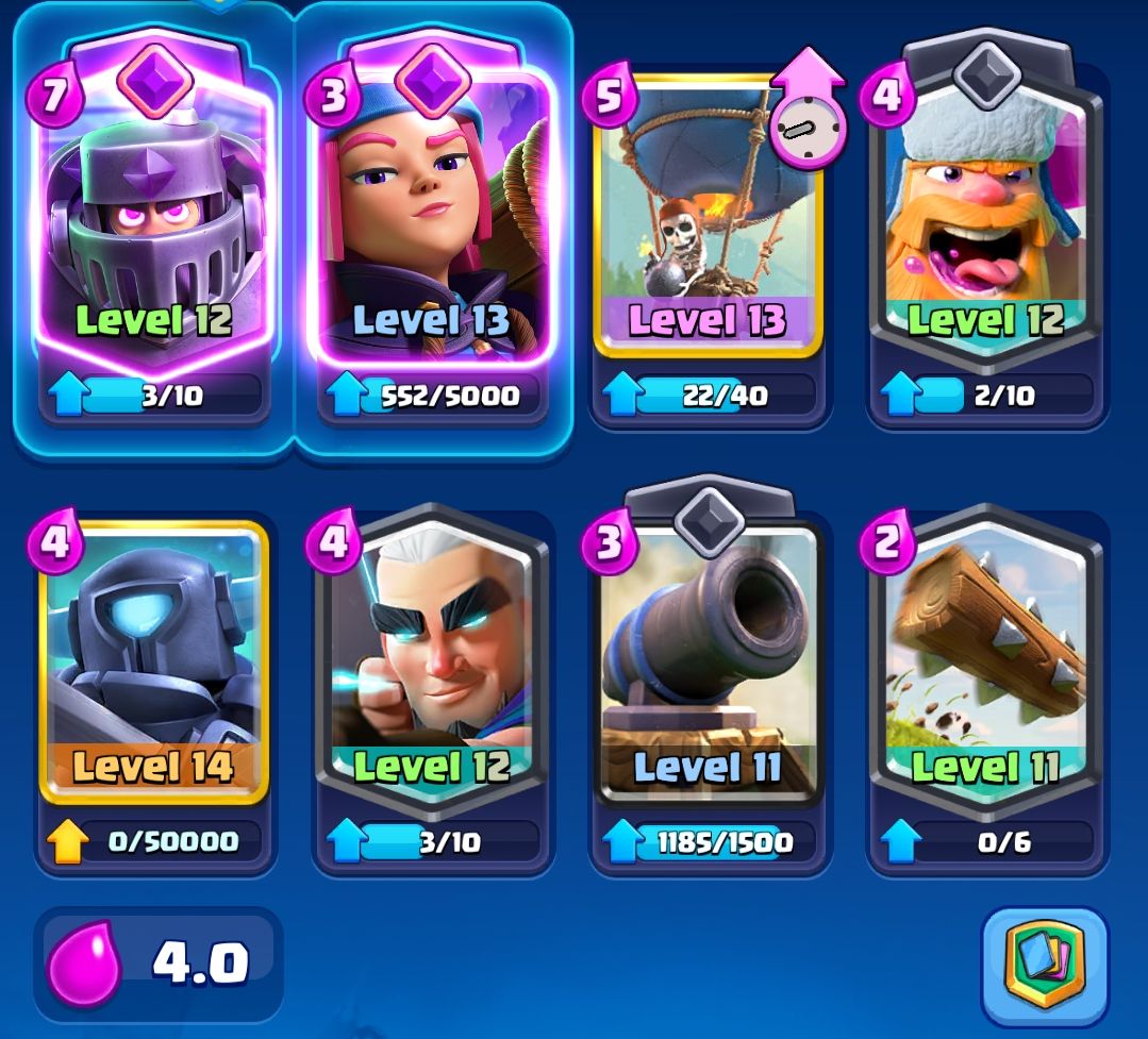 Niki38blvor 6 MonatenNiki38blEvo Barbs, evo witch, mini Pekka, log, Skelettarmee, goblin barrel, Princess und letzte weiß grad ndUnd Kanone