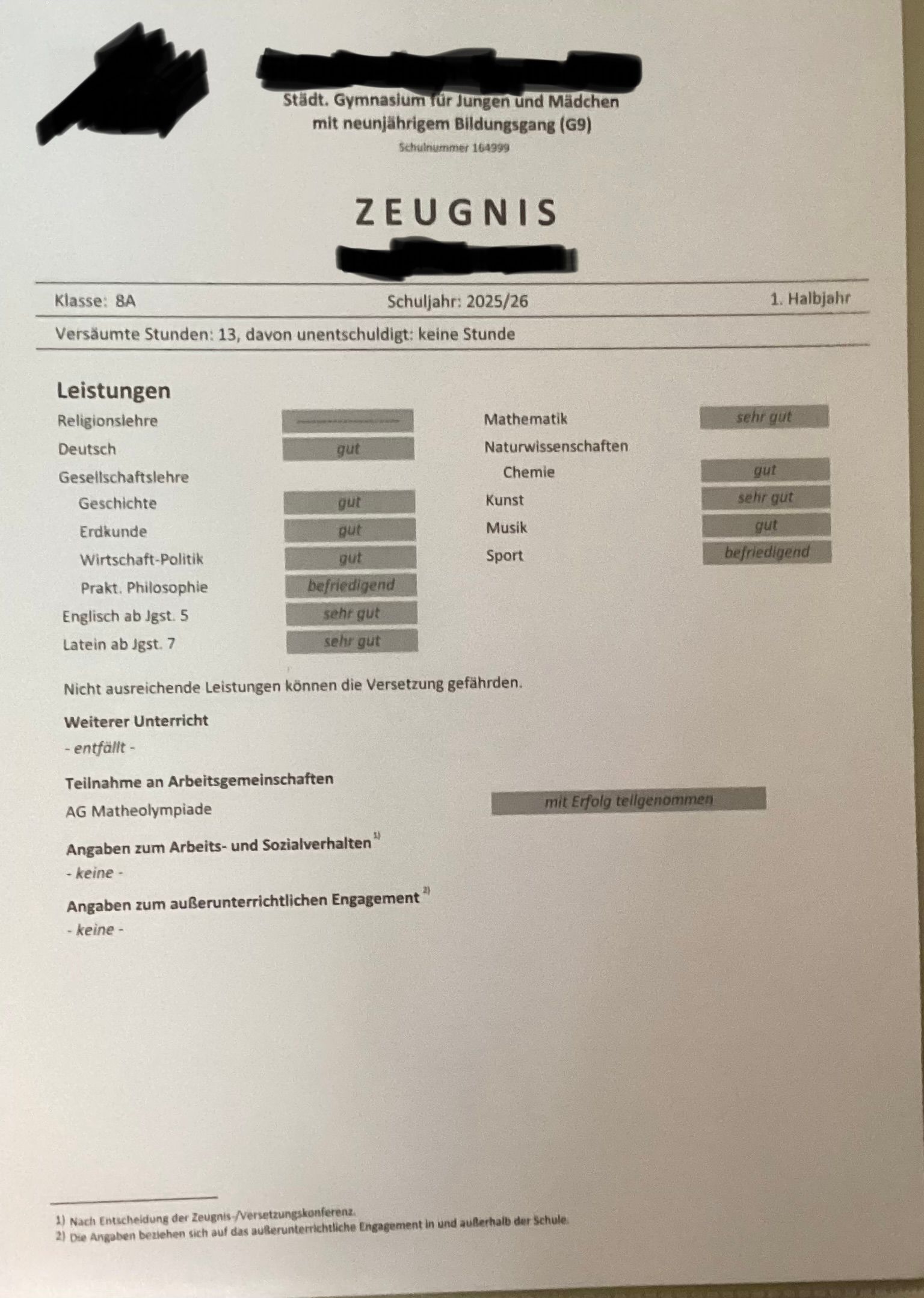 Also, 164999 ist die Schulnummer vom Ricarda-Huch-Gymnasium in Krefeld. Das steht da auf dem Zeugnis und wurde im Chat auch schon angesprochen. Habt ihr alle Tomaten auf den Augen oder was?