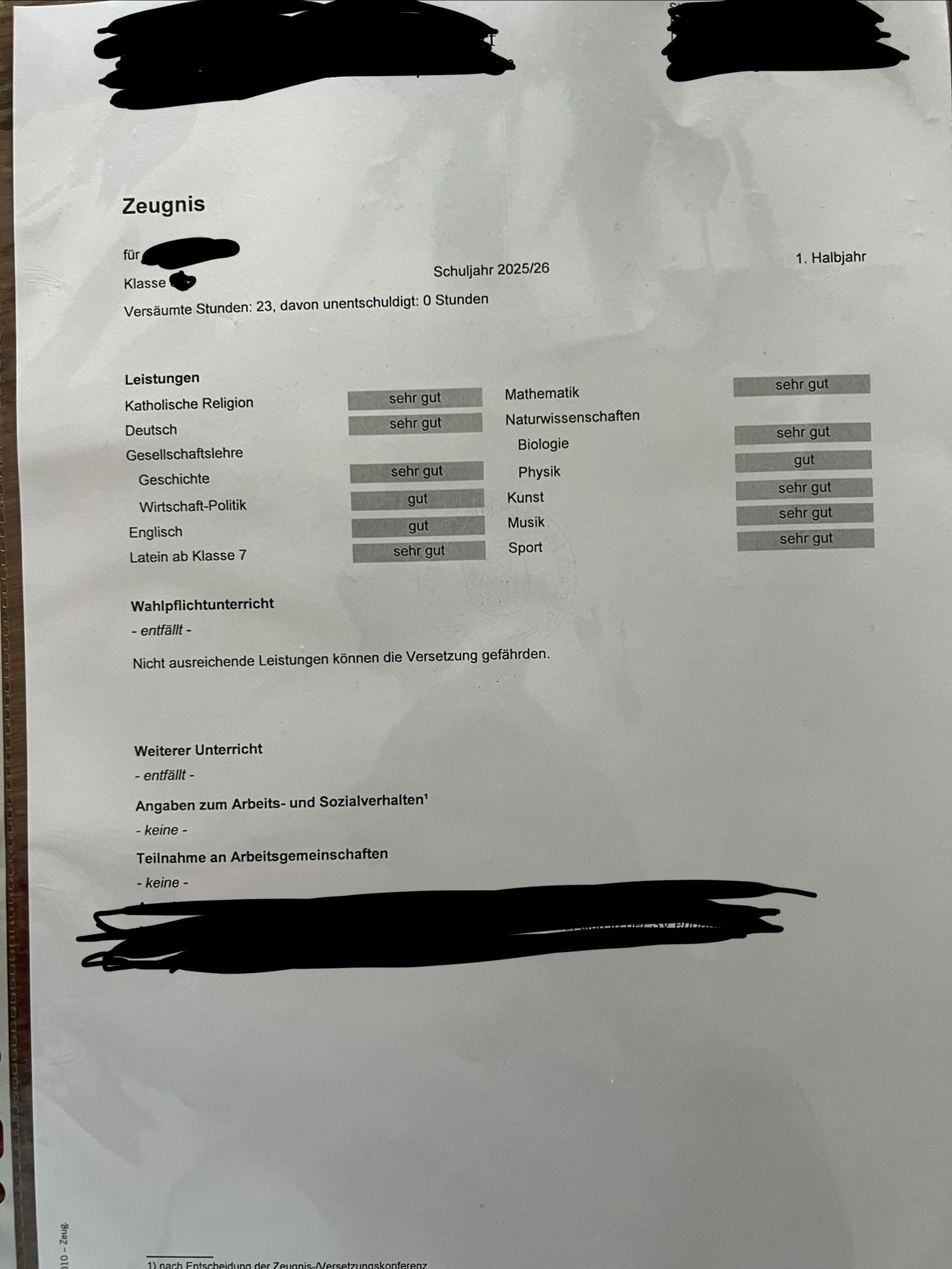 L-Zeugnis, wegen dem sport