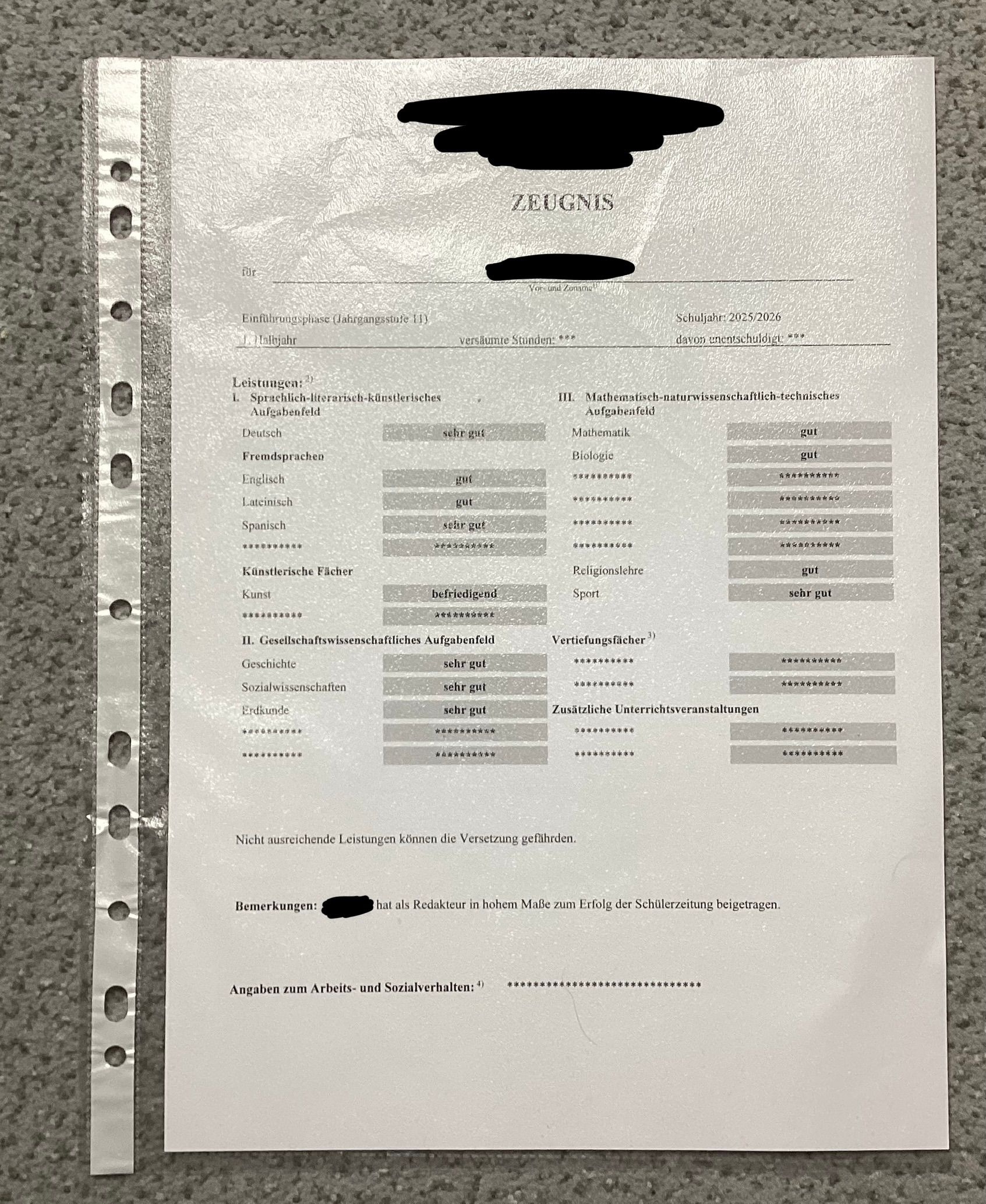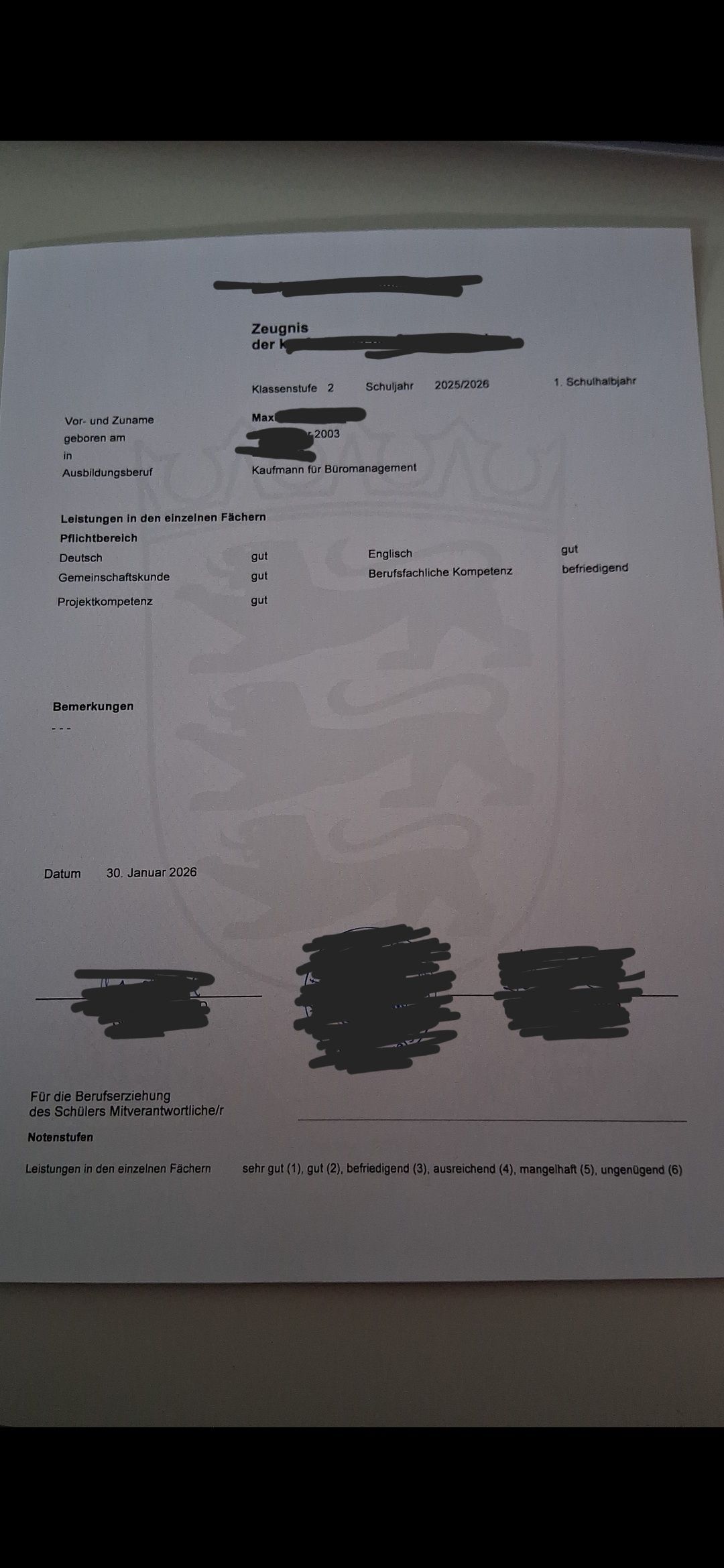 Deutschland, aber so wie auf dem Bild sehen scheinbar die Schweizer Zeugnisse aus