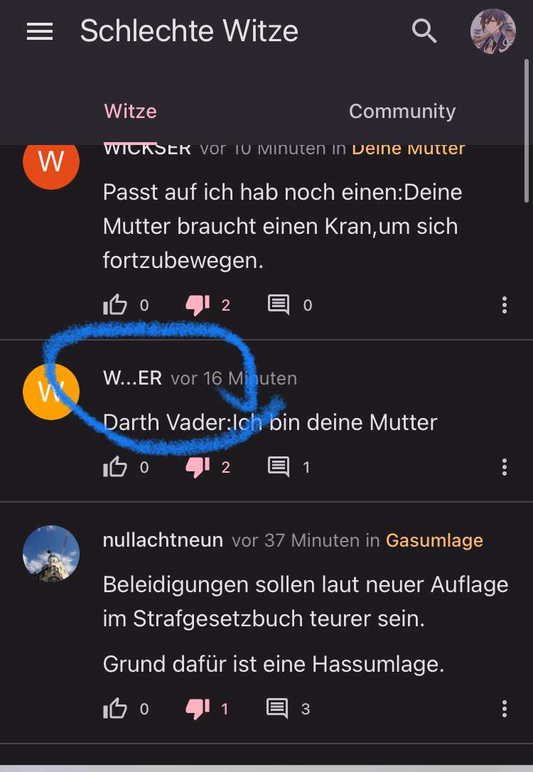 Gangster:Bei deinen Witzen merkt man,dass du geistig behlndert bist. Entinität:Verplss dich einfach von dieser Webstite,Du weist genau,dass dich niemand mehr hier mag Robin:Großes L für dich,du bist so ein Nerd DeinVater:W XD Mattihas:Du bist echt streng nur weil jemand beleidigt,muss man ihn nicht gleich löschen,Dies ist keine Website für Kinder. Mooly:Geht klar,du bist ganz in Ordnung deine Witze sind lustig. Legende:Bist so ein 0pfer Annoym der Dritte:Bist derselbe Spast wie Legende Dusselbold:Mach bessere Witze,Du glaubst manchmal echt,deine Witze sind was besonderes. Klausdiemaus:Gute Witze,aber welcher Mensch der über 6 ist mag Mickey Maus?