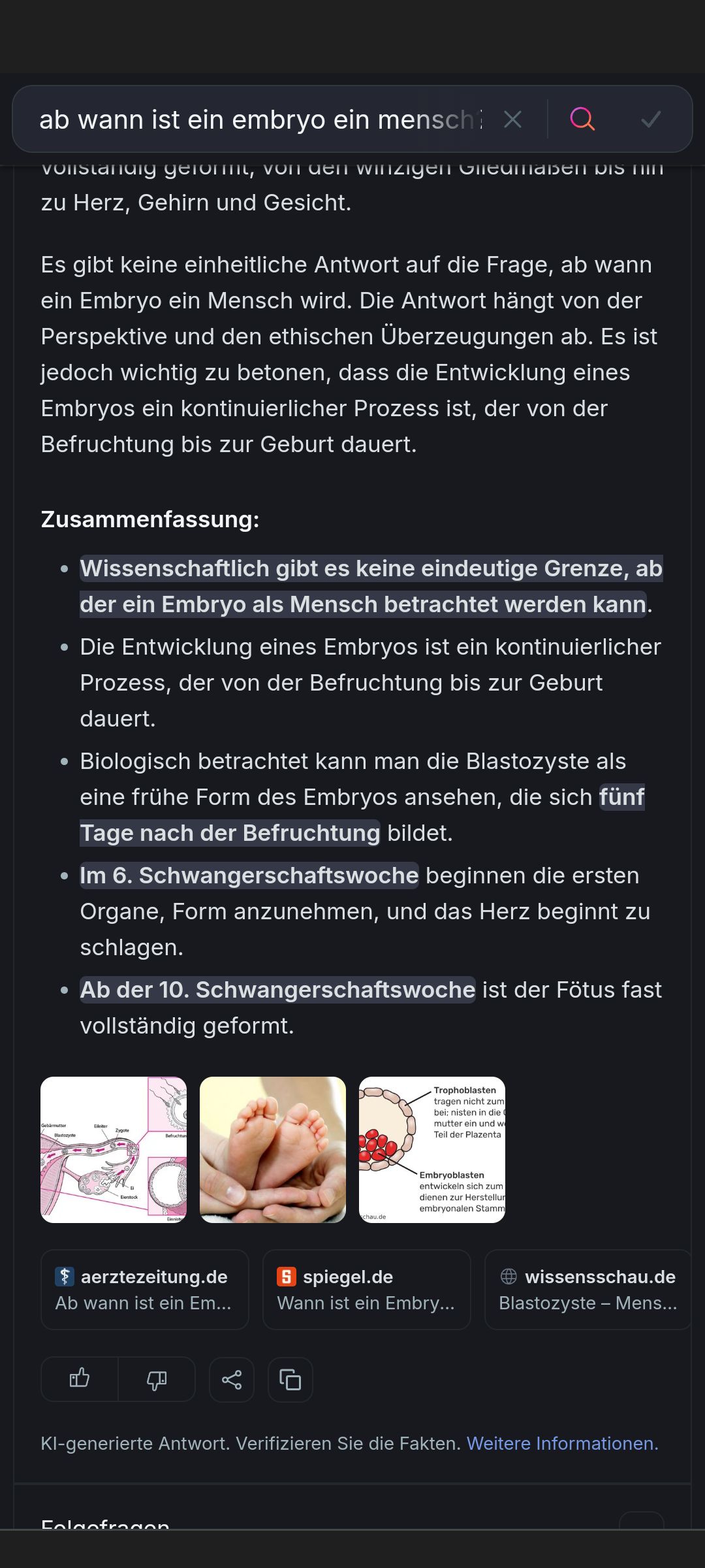 Aber stell dir vor, sie will es abtreiben weil der Mann sie verlässt und sie will dann kein Kind alleine auf die Welt bringen, oder weil es ihr eben mental nicht gut geht, und das könnte für das Baby aber auch nicht gut enden