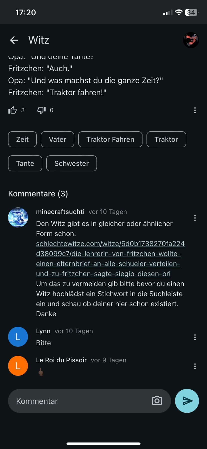 Sorry war offline er hat diesen emoji 🖕 auf einer meiner witze geschrieben
