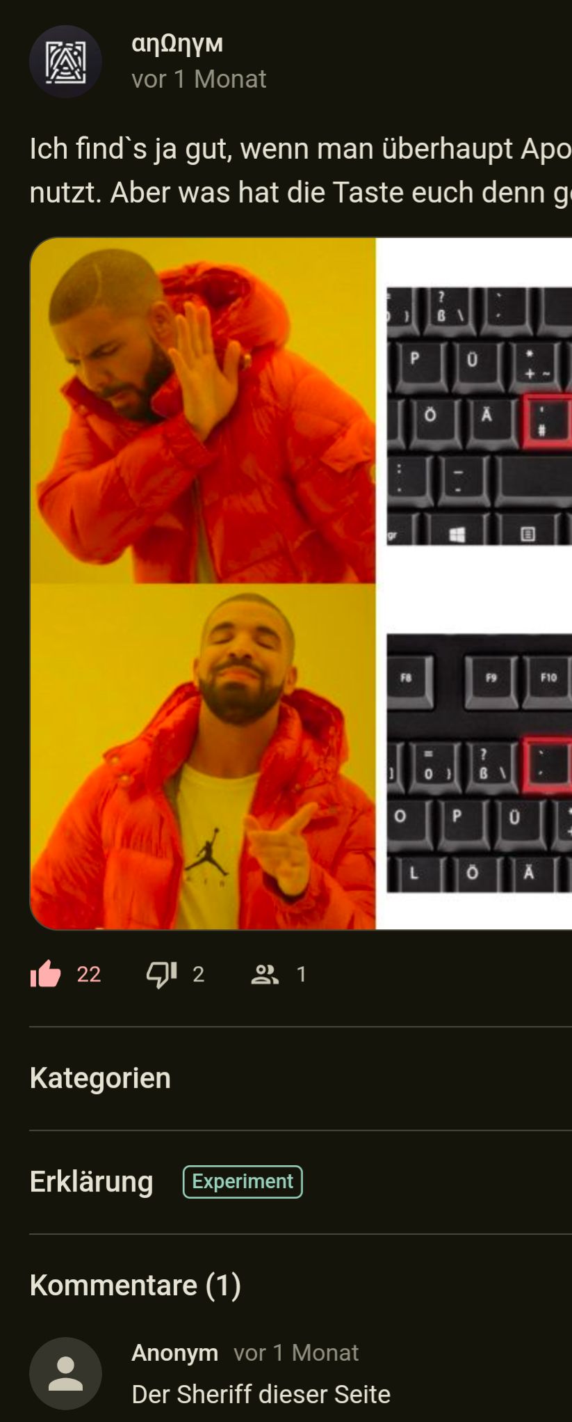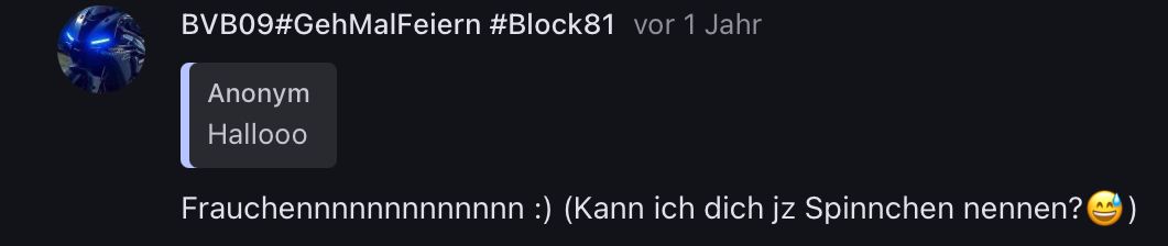 Ist zwar kein großer Inhalt, aber das als „Anonym“ zu sehen…