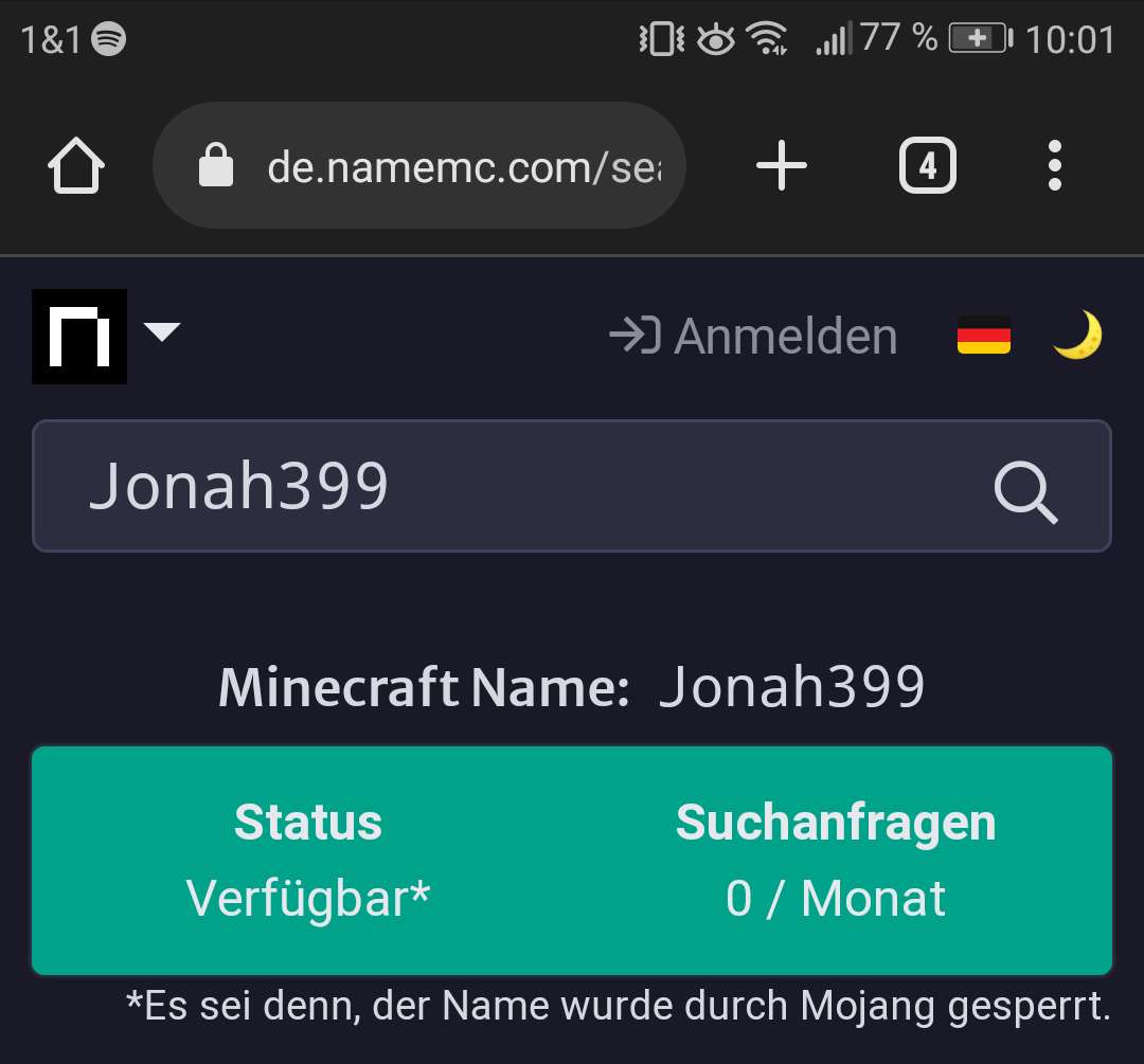 3.75vor 3 Jahrenkann nicht sein das du in der Java edition so heißt, ich hab auf ner Seite nachgeschaut wo man das überprüfen kann... Verfügbar bedeutet dass noch niemand den Namen hat
