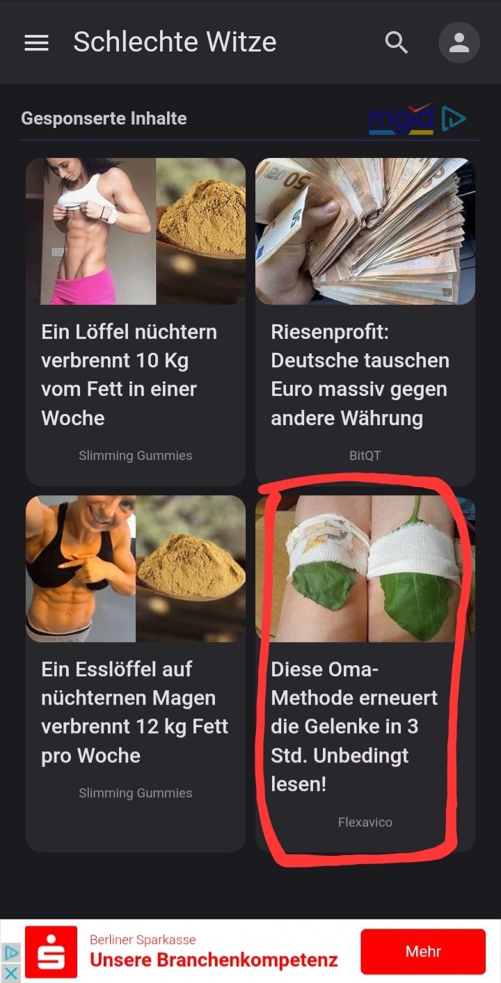 Ich bekomme immer nur die gegen Knie- und Hüftschmerzen und die Oma-Methode, um die Gelenke in 3 Std. zu erneuern (Unbedingt lesen)
