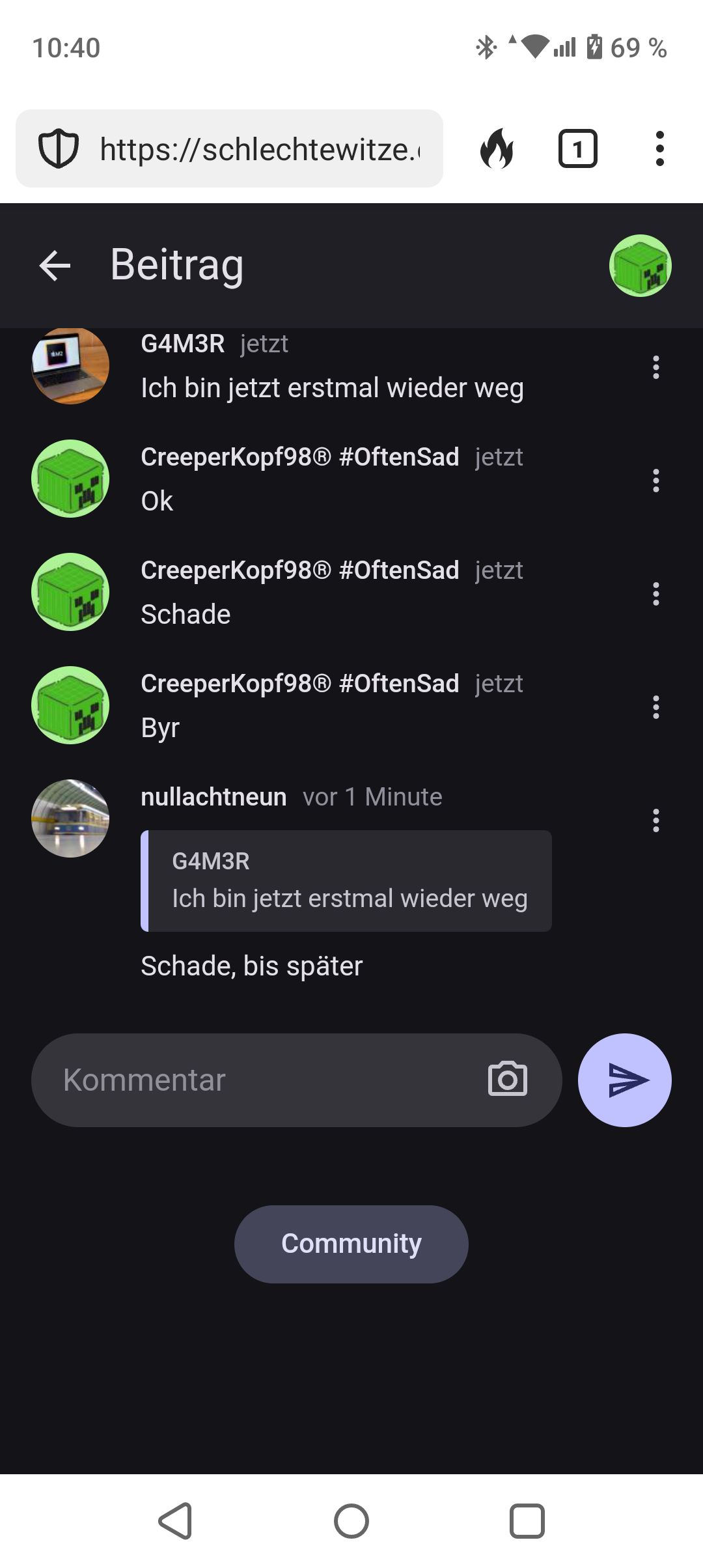 Und bei meinem Kommentar steht „vor 1 Minute drauf“, bei den vorherigen „gerade eben“