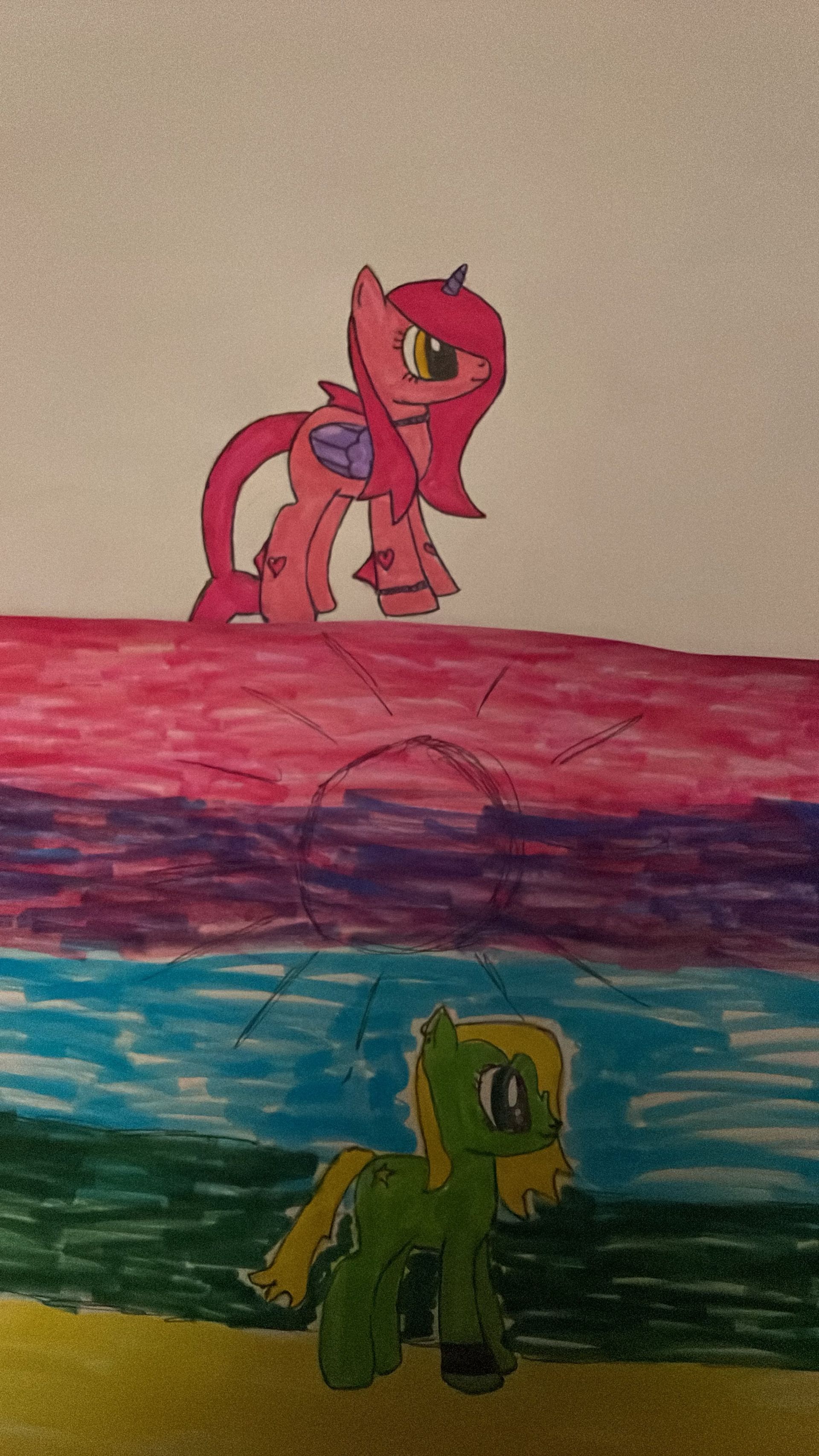 Alsoooo ich hab mich selbst (unten) (und nh andere Person(oben)) als my Little Pony Cartoons gemalt (ich hab viel Zeit) alsoooo 1. wie findet ihr dieeee :3 undddd 2. wenn ihr wollt das ich euch auch als Pony male schreibt das gerne in diesen Beitrag. Ich brauche dafür von euch ein paar Infos :3 1. Körperfarbe 2. Haarfarbe 2. Schmuck (ja, nein, wenn ja was für welcher (gerne Bild)) 3. Features (Flügel, Hörner, etc.) 4. Augenfarbe 5. Artstyle (wie oben Oda wie unten) also ja das wars. Und wenn sich jmd fragt Wrm zur Hölle ich das mache Uhhh ich hab morgen und übermorgen frei ^^ bedeutet sehr viel Zeit. Ach ja bin jz nd mehr on also schreibt gerne ich schau dann morgen. :3